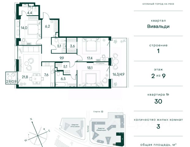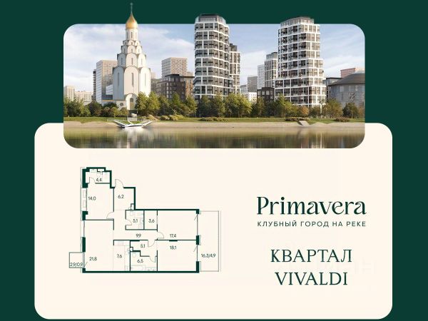 Клубный город на реке Primavera — это современный жилой комплекс премиум-класса, расположенный на первой береговой линии Москвы-реки в экологически чистом районе Покровское-Стрешнево. Под панорамными окнами квартир находится собственный экопарк с продуманной сетью прогулочных дорожек и современными детскими и спортивными площадками. За парком расположена набережная с собственным пляжем и зонами для отдыха. Клубный город на реке Primavera предлагает широкий выбор планировок для различных жизненных сценариев: от просторных однокомнатных квартир до пентхаусов и жилых помещений с террасами и патио. Выберите из 120 вариантов эргономичных планировок стандартного и евроформата. Из каждой квартиры открываются красивые виды на реку с углом обзора в 270 градусов. Дизайнерские лобби предлагают панорамный обзор на благоустроенный двор. Высокие потолки в 6 метров и качественная отделка создают атмосферу, схожую с пятизвездочными отелями. В Primavera есть всё необходимое для комфортной жизни в мегаполисе: • Образование для детей в шаговой доступности: 4 школы, 8 детских садов и развивающие центры с кружками и секциями. • Удобства на расстоянии приятной прогулки: супермаркеты, кафе, рестораны с верандами, салоны красоты, аптеки и многофункциональный центр для шоппинга и развлечений. • Умный дом: автоматизированное бесконтактное управление основными системами доступа и безопасности через мобильное приложение. Клубный город на реке Primavera выгодно сочетает комфорт городской жизни с близостью к природе. Живите в месте, где все создано для вашего удобства! Купить 3-комнатную квартиру в районе Покровское-Стрешнево в Москве.