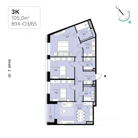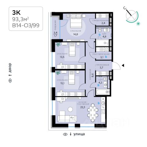 В продаже — двухкомнатная квартира, общей площадью 86,02 кв. м. Квартира расположена на третьем этаже десятиэтажного корпуса Балансд в квартале В16 нового района СберСити, который строит Сбер. Архитектуру квартала В16 создало итальянское бюро ARCHEA middle east: каждый дом узнаваем, но вместе они складываются в спокойный, цельный ансамбль. В облицовке сочетаются тёплые оттенки кирпича и металла, за счёт игры фактур фасады выглядят живыми и меняются в разное время дня. Строгая геометрия поддерживает ритм города, а мягкая природная палитра помогает чувствовать себя дома, а не в деловом квартале. Дом возводится по технологии монолитного строительства. Квартиры передаются без отделки, что позволяет будущим владельцам реализовать собственные дизайнерские решения и индивидуальные планировки. В квартирах предустановлена система "умный дом", объединяющая управление квартирой, домом и прилегающей территорией. Можно регулировать климат и освещение голосом или через смартфон. Квартал состоит из девяти домов средней этажности — от 7 до 10 этажей. Корпуса формируют большой внутренний двор площадью два гектара. Во дворе предусмотрены зоны для разных сценариев: просторные площадки для детей, пространства для активного досуга и спорта, тихие места для отдыха и спокойного времени, а также удобные рабочие места под открытым небом. Здесь легко найти своё — для жизни, здоровья и занятий тем, что действительно нравится. В доме предусмотрены: уютное лобби с зоной ожидания, лапомойка, санузел, помещение для хранения колясок и велосипедов, подземный паркинг. СберСити — это новый жилой и деловой район на западе Москвы, в одном из самых экологически чистых и престижных мест столицы. Это первая в России и крупнейшая в мире инновационная городская среда, созданная по международным стандартам зелёного проектирования. Здесь внедряются решения в области энергоснабжения, вакуумного мусороудаления, тестирования зелёных технологий, а в дальнейшем — системы искусственного интеллекта для управления домами и городской инфраструктурой. Строительство проекта началось в 2021 году, заселение первых корпусов — с лета 2024-го. Общая площадь территории — 461 га, из них более 2,5 млн кв. м жилья и около 833 тыс. кв. м офисных пространств. Будет построено 7 школ, 13 детских садов и 2 поликлиники. В СберСити будут жить 65 тыс. человек и работать 70 тыс. Развитием территории занимается АО "Рублёво-Архангельское", входящее в группу Сбер. СберСити — место, где хочется жить, работать и растить детей. Переезжайте в СберСити!