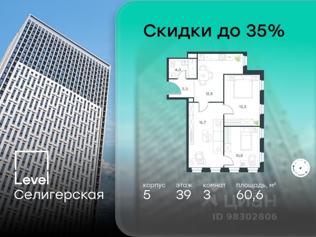 Прямая продажа от застройщика. Продаётся 3-комнатная квартира общей площадью 89.19 м² без отделки в ЖК "Селигер Сити" на 4-м этаже 21 этажного дома. Селигер Сити - это уютное пространство, где предусмотрена застройка разной этажности, чтобы каждый покупатель мог выбрать то, что ему по душе: невысокие дома или небоскребы, с верхних этажей которых будут открываться отличные виды на город. Преимущества проекта: Первые три очереди сданы. - 2 минуты пешком от метро "Селигерская" - Архитектурное решение от голландского бюро MLA + - 8 корпусов разной этажности от 8 до 45 этажей - Одна из самых больших придомовых территорий в Москве - размером с 4 футбольных поля - Огороженная охраняемая территория, круглосуточное видеонаблюдение - Европейский подход к благоустройству от бюро WOWHaus: детские площадки для разных возрастов, спортивные площадки, площадки воркаута, дорожки для бега и пеших прогулок, скейтпарк, хоккейная площадка, площадка для выгула собак - Искусственный пруд на территории комплекса с благоустроенной набережной и мостом - Продуманная концепция инфраструктуры: уютные кафе и рестораны, супермаркет, магазин фермерских продуктов, бытовые службы, салон красоты, детские сады - Панорамные окна высотой до 2,5 м, в корпусах 3 очереди витражное остекление высотой до 4,2 м - Широкий выбор квартир - от компактных студий до просторных квартир с тремя спальнями и пентхаусов - Четыре вида дизайнерской отделки квартир от бюро Вlank Architects - Возможность купить квартиру с предчистовой отделкой white box - "Умный дом" на платформе Ujin. Система безопасности, вход на территорию и в подъезд по биометрии или BLE-метке, въезд в паркинг по считывателю номера, контроль климата. Все для комфортной жизни! - Лобби по индивидуальному дизайн проекту от европейского бюро Вlank Architects: лаунж-зоны, ресепшен, колясочная, помещение для мытья лап животным после прогулки - Подземный паркинг на 2189 машино-мест по индивидуальному дизайну, с зарядными устройствами для электромобилей, постами для подкачки шин и келлерами - Надежный девелопер с опытом премиальных проектов MR Group Расположение комплекса: - 2 минуты от станции метро "Селигерская" - 7 минут на машине до станции метро "Окружная" - Предусмотрен удобный выезд в сторону ТТК (всего 9 км или 15 минут без пробок) - МКАД в 10 минутах на машине Компания MR Group предлагает своим клиентам специальные условия приобретения квартир в рамках программ ипотечного кредитования от банков-партнеров.