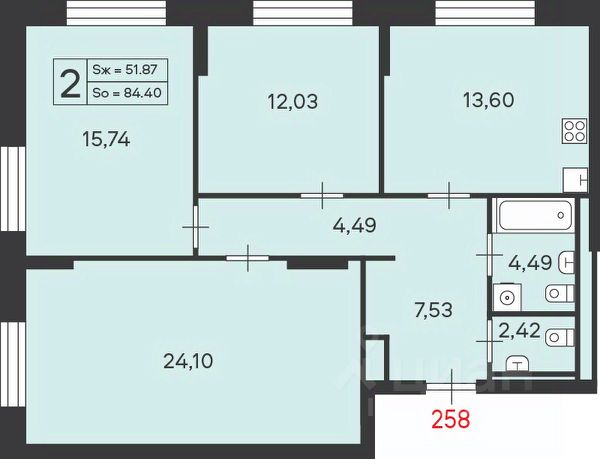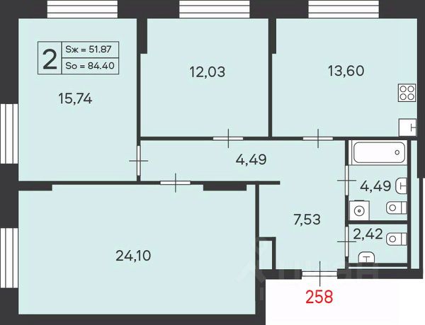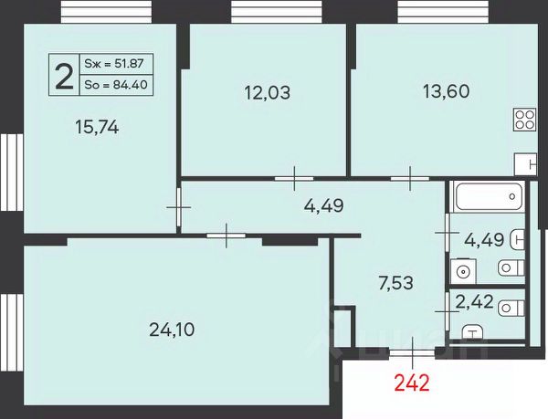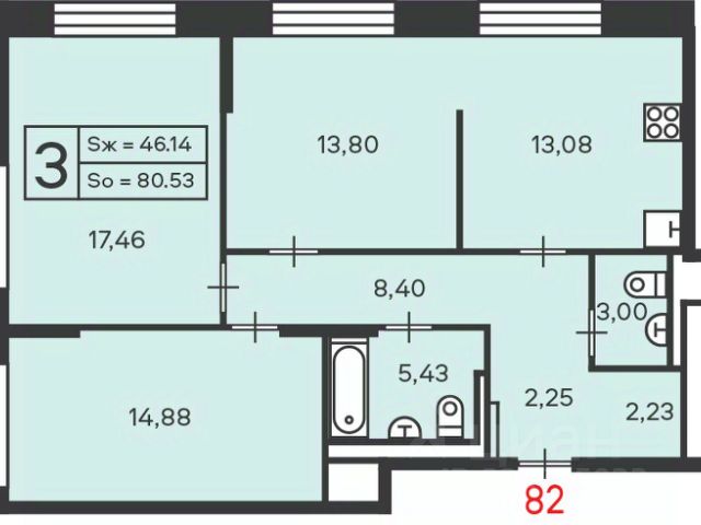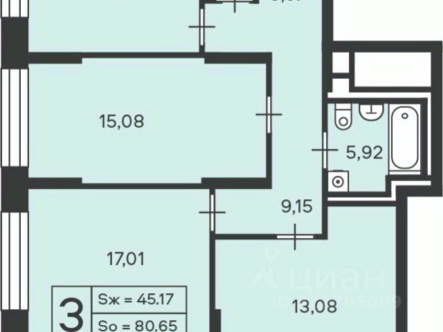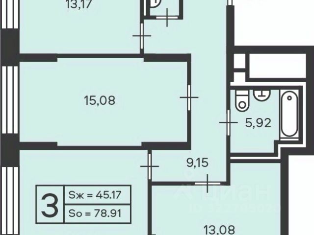 Общая площадь квартиры 103.9 кв.м.: