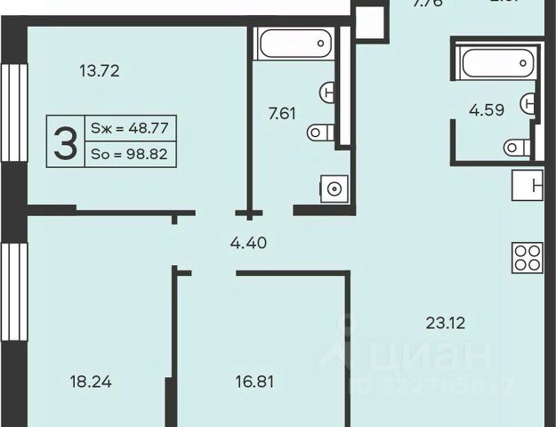 - кухня 13,4 кв.м. с посудомоечной машиной, холодильником, варочной индукционной панелью, духовым шкафом, смарт-ТВ и саундбаром,