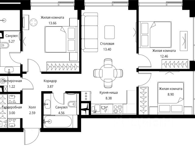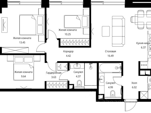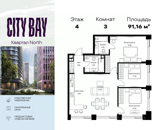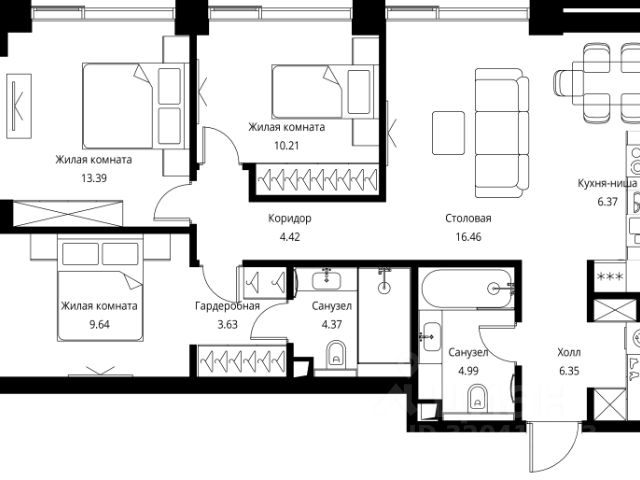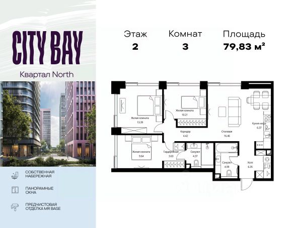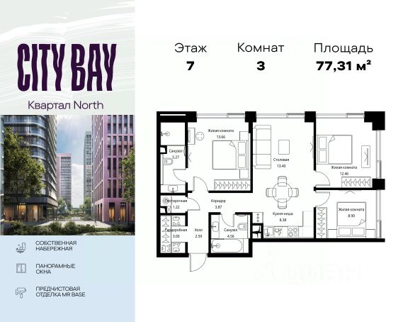 Прямая продажа от застройщика. Продаётся 3-комнатная квартира общей площадью 77.31 м² с предчистовой отделкой в ЖК City Вау, квартале North, на 7-м этаже 10 этажного дома. Концепция жилого комплекса City Вау - настоящий город в городе с отлично развитой инфраструктурой и собственной благоустроенной набережной. На территории жилого комплекса расположено пять кварталов - Atlantic, Pacific, Indian, North, Cliff. Жилой квартал City Вау отличается оригинальной концепцией и выделяется среди других проектов такими характеристиками как: - Архитектура, - Виды из окон, - Природное окружение, вызывая гордость у жителей и восхищение у прохожих. Вся жизнь района Покровское-Стрешнево строится вокруг водных объектов: - Пойма реки Сходни с уникальной экосистемой, - Речка Химка и Химкинское водохранилище, - Москва-река, - Канал имени Москвы. Кругом вода, и местные с удовольствием этим пользуются. А сразу за рекой - центр водного спорта в Строгино с вейк-парком и яхт-клубами. Помимо воды, здесь очень много зелени: - Рядом Сходненский ковш памятник природы, естественный амфитеатр глубиной 40 метров; - Парк при усадьбе Братцево с фруктовым садом; - Дубовая роща "Маяк", - Алешкинский лес; - Лесопарк Покровское-Стрешнево с пляжами и бобрами. Главные транспортные артерии района: - Волоколамское шоссе, - Таганско-Краснопресненская линия метро и МЦД-2. Всего за 20 минут можно добраться до центра на машине или метро, а МЦД связывает ЖК City Вау с северными, восточными и юго-восточными районами. Компания MR предлагает своим клиентам специальные условия приобретения квартир в рамках программ ипотечного кредитования от банков-партнеров.