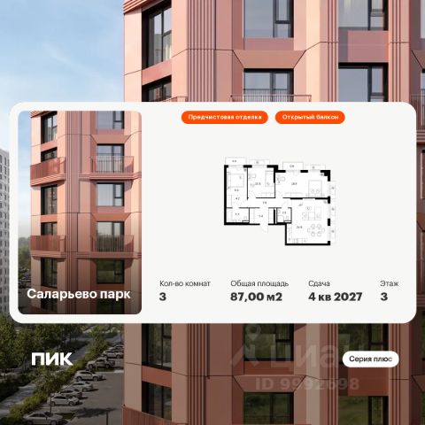 Продаётся 3-комн. квартира площадью 78,7 кв.м на 14 этаже 22 этажного дома (Корпус 56.2 , Секция 1) проекта ПИК Саларьево парк. Светлый просторный подъезд на уровне земли, функциональная планировка, большие окна, c отделкой. Жилой район "Саларьево парк" расположен в Новой Москве, в четырёх километрах от МКАД по Киевскому шоссе. Две станции метро: "Саларьево" и "Филатов луг", — находятся в пешей доступности от проекта. Дойти до них можно за 510 минут. В квартале уже создана качественная среда, где есть абсолютно всё для полноценной жизни, работы и отдыха. Благодаря удобному расположению проекта всё важное будет рядом: детские сады, школы, кафе и рестораны, шопинг в торговых центрах, фитнес и даже аэропорт. Все корпуса в квартале гармонично сочетаются, образуя единую городскую среду. Между собой их объединяет невысокая этажность и натуральная цветовая гамма. Здесь приятно гулять и проводить время на улице всей семьёй. В "Саларьево парке" создана уникальная образовательная среда, включающая в себя шесть школ, рассчитанных на 6 250 учеников. Две из них уже открыты, их посещает 2 300 детей. Также на территории "Саларьево парка" находится 12 детских садов, один из которых с бассейном. Сейчас уже открыты 7 садов. В "Саларьево парке" открыта уникальная игровая площадка — PlayHub "Оригами". Здесь есть ручей, горка-труба и рельефные холмы. Взрослые смогут отдохнуть в уютном кафе, пока дети играют. Также на территории проекта есть SportHub — большая спортивная зона, разделённая по интересам и возрастам. Здесь можно заниматься разными видами спорта: футболом, баскетболом, волейболом и стритболом. Зимой центральную часть площадки превращают в каток. Во дворах-парках жилого квартала есть места для отдыха, детские и спортивные площадки. На первых этажах домов расположены магазины, кафе и полезные сервисы. Также вблизи проекта есть несколько масштабных торговых центров. До ТЦ "Саларис" пять минут пешком, до "Рио", Metro Cash & Carry и "Леруа Мерлен" — пять минут на автомобиле. Артикул 990166 (Застройщик ООО "Специализированный Застройщик "Тирон") Продается 3-комнатная квартира в поселении Сосенское в Москве.