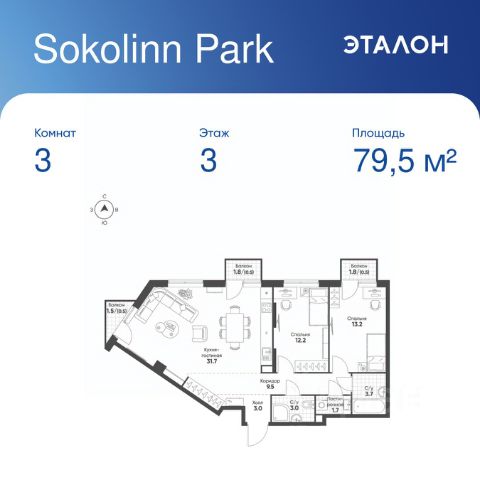Продается 3-комнатная квартира в ЖК "НАЗАРЕ'" Общая площадь - 76.90 Тип дома - монолитный Этаж - 23 Год сдачи - 2028 Предлагается квартира площадью 76.90 кв. м в новом современном квартале на востоке Москвы, прямо у станций метро и МЦК "Бульвар Рокоссовского". Квартира располагается в корпусе 4 на 23 этаже комплекса бизнес-класса "НАЗАРЕ'". Великолепная транспортная доступность: • 2 минуты ходьбы до метро и МЦК "Бульвар Рокоссовского"; • 3 минуты на авто - удобный выезд на СВХ (МСД); • 10 минут на авто до национального парка "Лосиный остров"; • 10 минут на авто до "Измайловского парка"; • 15 минут до авто до парка "Сокольники"; • 15 минут занимает выезд на ТТК, • 18 минут на авто до Садового кольца. Индивидуальная архитектура в современном стиле: • шесть башен переменной высотности от 24 до 43 этажей, в том числе одна высотная 143-метровая доминанта, которая станет достопримечательностью востока Москвы; • авторы архитектурной концепции - знаменитое бюро СПИЧ (среди их работ - башня "Федерация", новое здание Третьяковской галереи, реконструкция БСА "Лужники" и др.); • торгово-развлекательный комплекс с фитнес-центром, детской игровой комнатой и открытыми террасами прямо возле квартала; • дизайнерские лобби от бюро ABOVE ARCHITECTURE с панорамными окнами, интерьерами в теплой цветовой гамме и мягкой зоной ожидания располагаются в каждой башне; • корпуса расположены так, чтобы из окон открывались потрясающие виды на закаты и рассветы, зеленые панорамы или огни мегаполиса; Особенности расположения "НАЗАРЕ'" находится максимально близко к метро, и в то же время проект вписан в уже существующую инфраструктуру зеленого столичного района Богородское. Это обеспечивает быстрый доступ ко всем нужным объектам инфраструктуры (детские сады, школы, медцентры, магазины, салоны красоты, фитнес-клубы, футбольные поля, спортивные школы), а также к живописным зеленым зонам - национальному парку "Лосиный остров", парку "Сокольники", Черкизовскому детскому парку, Измайловскому лесопарку с усадьбой Измайлово. Собственная инфраструктура и благоустройство Шесть башен квартала будут объединены цокольным этажом, в который можно попасть как с улицы, так и со стороны лобби. Здесь разместятся необходимые для комфортной повседневной жизни кофейни, супермаркет, рестораны, магазины и многое другое. В комплексе предусмотрен вместительный двухуровневый подземный паркинг с келлерами для хранения сезонных вещей. Во дворе комплекса "НАЗАРЕ'" будут места как для спокойного отдыха и работы, так и для игр и спорта. Здесь организованы игровые площадки для детей всех возврастов, места для стритбола и тенниса, а также зона с природным ландшафтом и коворкинг с экологичной деревянной мебелью. 3-комнатная квартира станция Бульвар Рокоссовского (МЦК).