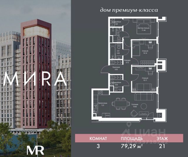 Прямая продажа от застройщика. Продаётся 3-комнатная квартира общей площадью 83.33 м² без отделки в доме премиум-класса МИRА на 4-м этаже 17 этажного дома. Квартира расположена в корпусе 1. Дом премиум-класса МИRA это: • Спокойный район с богатой историей и сложившейся инфраструктурой • Авторская архитектура на стыке классики и современности • Вход в парк прямо из жилого комплекса • Панорамные виды на Яузу, парки, ВДНХ и скульптуру "Рабочий и колхозница" • Удобные сервисы и безопасность для каждого резидента Расположение: Жилой квартал расположен в Алексеевском районе на северо-востоке Москвы, на второй линии домов, таким образом вы сможете дистанцироваться от шума и суеты проспекта Мира, но при этом будете жить недалеко от этой важной городской магистрали. Прямо у дома: • Парк Акведук • Река Яуза • Памятник "Рабочий и колхозница" Пешком: • 16 мин м. ВДНХ На автомобиле: • 12 мин ТТК • 15 мин Садовое кольцо • 12 мин Национальный парк "Лосиный остров" Благоустройство: Концепция благоустройства от бюро "ДРУЖБА" разработана в стиле "Лесная тропа". В уютном дворе расположились словно затерянные в лесу, площадки для отдыха. Они разделяются островками с травами, кустарниками, крупными камнями и деревьями, между которыми проходят узкие песчаные тропинки с деликатной подсветкой по вечерам. Центральной точкой притяжения для жителей станет главная площадь с фонтаном, которая открывается сразу из двух входных групп. Внутренний двор МИRA: • Детская площадка с зонами для игр малышей до трех лет и детей более старшего возраста • Спортивная площадка с профессиональным оборудованием для тренировок • Декоративные перголы • Воздушный арт-объект с подсветкой, похожий на облако • Чайный домик, где в отдельном отапливаемом павильоне можно в любое время года попить кофе с соседями или устроить камерное семейное чаепитие • Зоны для работы и отдыха с гамаком под навесом, скамейками и креслами Инфраструктура и окружение: В Алексеевском районе есть огромные благоустроенные парки, магазины, гимназии с высоким рейтингом и филиалы ВУЗов, частные и государственные детские сады, модные кофейни и фитнес-центры. В квартале МИRА предусмотрены: • 2 ресторана с видом на парк Акведук • 3 кафе • фитнес-студия • подземный паркинг на 330 машино-мест Компания MR Group предлагает своим клиентам специальные условия приобретения квартир в рамках программ ипотечного кредитования от банков-партнеров. Купить 3-комнатную квартиру станция Ростокино (МЦК).