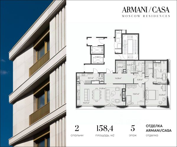 На 5-м этаже клубного дома Armani/Casa Moscow Residences единственного в России жилого проекта, созданного в партнерстве с легендарным итальянским домом Armani предлагается к продаже квартира общей площадью 158,4 кв. м. Квартира полностью готова к проживанию: она продается с интерьерной отделкой, выполненной в духе вневременной элегантности по дизайн-проекту от бренда Armani/Casa. В отделке использованы изысканные материалы: фирменные шелковые обои, несколько сортов натурального мрамора, ценные породы дерева. Резиденция состоит из трех комнат. В приватной зоне светлая угловая мастер-спальня, включающая гардеробную и ванную комнату с окном и отдельно стоящей ванной, а также вторая комната, которая может служить как спальней, так и кабинетом. В общественной зоне просторная кухня-гостиная, которую украшают настоящий дровяной камин в облицовке из мрамора Nero Marquina, а также кухня Armani/Dada с каркасом из черного дуба, столешницей и фартуком из натурального камня и встроенной бытовой техникой Gaggenau. Оборудование ванных комнат включает раковины и тумбы под них, унитазы и биде, смесители, зеркала и бра от бренда Armani/Roca. Квартира спроектирована с вниманием к образу жизни будущих резидентов, и поэтому в здесь предусмотрена специальная сервисная зона для персонала с отдельным входом и кухней, позволяя обеспечить максимальный комфорт и приватность и скрывая от глаз бытовые вопросы. Дом расположен в одном из самых аутентичных районов Москвы Якиманке, где сохранилась атмосфера старой Москвы. Эта локация известна как "Золотой треугольник искусств": всего в нескольких шагах находятся Третьяковская галерея, Дом культуры ГЭС-2 и новое здание Третьяковки. Здесь прошлое встречается с настоящим, создавая уникальный ритм повседневной жизни. Тихий внутренний двор украшает элегантный allergy-friendly сад, созданный по проекту легендарного британского бюро Gillespies. В защищенном от внешнего мира природном оазисе высажено около 70 разновидностей растений с нулевой или минимальной аллергенностью: красные и обычные клёны, рябины, кусты боярышника, спиреи, гортензии и яркие первоцветы крокусы. Инфраструктура соответствует коллекционному статусу дома: — Лаунж-зона с камином — Современный фитнес-центр с оборудованием премиальной линейки Technogym — Массажный кабинет и расслабляющий хаммам — Уютная детская игровая комната с выходом на закрытую детскую площадку — Колясочная и удобная система приёма посылок Подземный паркинг является продолжением общей концепции роскоши. Его интерьер также разработан студией дизайна Armani/Casa. Расположенные на одном уровне 42 машино-места обеспечивают удобство передвижения. Лифт поднимается непосредственно из паркинга на этаж без лишних переходов и лестниц. "" Продам 3-комнатную квартиру в переулке Старомонетный в Москве.