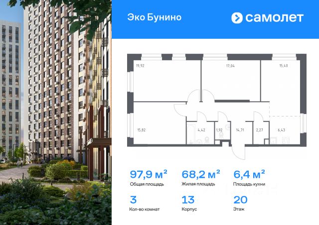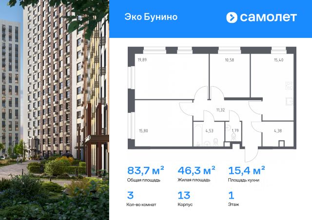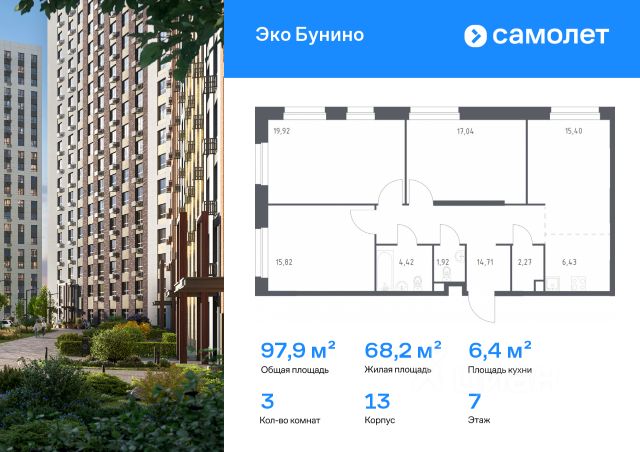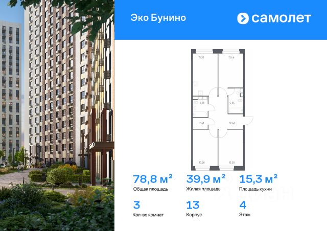Строим кварталы для жизни с заботой о будущем. Предлагается 3-комнатная квартира комфорт-класса 78,58 кв.м в корпусе 13 на 13 этаже, в ЖК "Эко Бунино" Квартира с чистовой отделкой. Доступность дополнительных опций уточняйте у застройщика. Приобрести квартиру возможно по специальным акциям от застройщика, с текущими условиями акций можно ознакомиться в блоке "Акций". Цена динамическая и может отличаться, уточняйте актуальность у застройщика. "Эко Бунино" — жилой комплекс в Новой Москве, полностью готовый для жизни. Уже построены школа и детские сады, открыты ледовая арена и магазины. Рядом — 2 станции метро и 3 лесопарка для прогулок. До станции метро "Новомосковская" — 20 минут пешком по экотропе. Во дворах-парках, закрытых от машин, комфортно и безопасно гулять. Здесь высажены уже взрослые деревья, которые создают прохладную тень в жаркий день. Ребенок любого возраста найдет увлекательное занятие в уже готовом плейхабе с большой горкой в виде слона и уникальным игровым оборудованием. Пока дети играют, родители могут прогуляться по бульвару или отдохнуть под навесом из растений. "Эко Бунино" — это 19 монолитных домов переменной этажности. Для облицовки используется навесной вентилируемый фасад и клинкерная плитка, которая имитирует кирпич. Переменная этажность обеспечивает хорошую инсоляцию дворов: в солнечные дни на территории особенно приятно гулять.