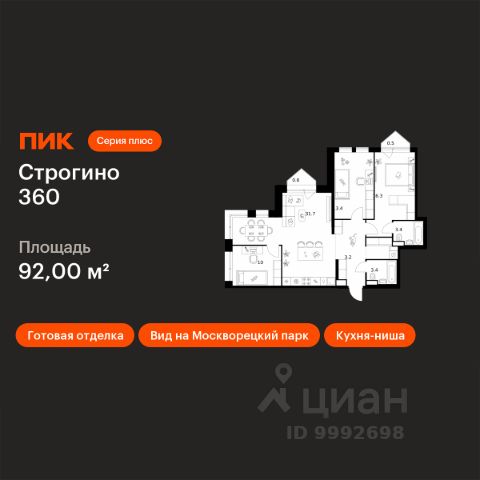 Новостройка! Продается 3-комн. кв-ра площадью 92 кв.м, (Корпус 1.2, Секция 1) 6 этаж 30-этажного дома в Строгино 360 от ПИК. Проект, где каждый день будет наполнен гармонией и новыми возможностями, где можно найти идеальный баланс между энергией большого города и спокойствием природного окружения. Это настоящая экосистема в окружении четырех парков и набережной Москвы-реки, где современная архитектура, умные технологии и продуманная среда создают новое качество жизни. Здесь дом — не точка на карте, а пространство состояния: покоя, сосредоточенности, внутренней свободы.Ты всё ещё в городе. Но ты уже в стороне от его суеты. Мы создаем многофункциональный район с уникальной идентичностью, интегрированный в городскую ткань Москвы. Ключевой принцип — комплексное развитие территории, учитывающее потребности всех групп пользователей: от жителей и бизнеса до гостей города. Проект максимально раскрывает потенциал места за счет синтеза современной архитектуры, динамичной деловой среды и уникального природного ландшафта — акватории Москвы-реки и зеленых массивов. "Строгино 360" — больше чем жилой квартал. Здесь создана вся необходимая инфраструктура для комфортной и насыщенной жизни. Главной артерией станет пешеходный бульвар длиной 3,4 км с магазинами, кафе и зонами отдыха. Для детей построены современные детские сады и школы с классами и лабораториями от "Ростеха" и с программами, созданными при участии МФТИ. Любителей активного образа жизни ждут спортивный центр, зоны воркаута, памп-трек и водные виды спорта на Строгинском затоне. А в деловом кластере можно работать рядом с домом. #d21.12# Артикул 1052148 Продается 3-комнатная квартира в районе Строгино в Москве.
