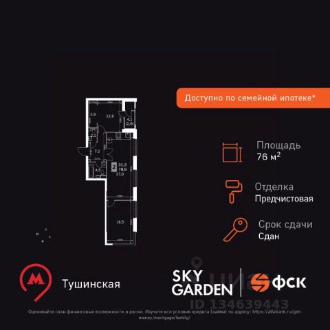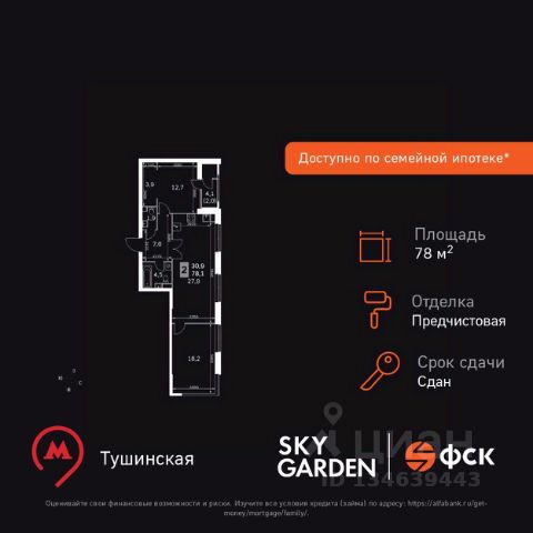 Прямая продажа от застройщика! Жилой Комплекс бизнес-класса. Продаётся 3-к квартира номер 683 общей площадью 87.2 кв.м. на 9-м этаже 43 этажного здания. Предчистовая отделка. Цена с учётом скидки. Особенности квартиры: - Организуем показ в удобное для вас время! - Мастер-зона с гардеробной. Просторное место для отдыха и удобного хранения вещей. - Просторная спальня, в которой можно разместить большую кровать. - Распашная планировка - отличное сочетание удобства и свободы. - Увеличенная ширина окна/окон - больше света и визуального простора. - Раздельный санузел - больше удобства для всех членов семьи. - Гибкая планировка - создайте пространство по своему вкусу. - Можно оборудовать 2 или более рабочих места - пространство для нескольких человек. - Можно оборудовать рабочее место - комфорт для работы и учёбы. - Просторная мягкая зона - комфорт и уют для отдыха всей семьи. - Гардеробная - удобство для хранения и организации вещей. - Ниша под шкаф - компактное и удобное место для вещей. - Лоджия - уютное место для отдыха и тишины. Квартира с предчистовой отделкой. Вам не придется заниматься черновыми и трудоёмкими работы, а чистовую отделку и дизайн - сделайте на свой вкус. Информация о комплексе: ЖК "Скай Гарден" в Покровском-Стрешнево: гармония природы и мегаполиса. Живите среди зелени одноимённого парка, рек и каналов с чистым воздухом, сохраняя все преимущества городской инфраструктуры. Идеальный баланс для тех, кто ценит природу без компромиссов в комфорте. Транспортная доступность: Всего в 12 минутах пешком до м. Тушинская и 15 минутах до станции Тушинская МЦД. На автомобиле: 2 км до Волоколамского шоссе, 2,5 км до МКАД и 15 км до Садового кольца Внутренняя инфраструктура: К вашим услугам игровые площадки для детей с горками и фонтанами. Йога на газоне, воркаут, велопарковки. На территории: поликлиника, аптека, супермаркет, зоны отдыха. Игровая комната в лобби, хранилище для велосипедов в подъездах. Рядом: кафе, пекарня, мастерские, секции. Парк 3,5 га с набережной для прогулок. Всё для жизни и спорта в шаговой доступности. Квартира с предчистовой отделкой - ваш дизайн без черновых работ