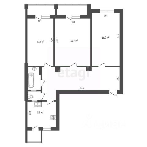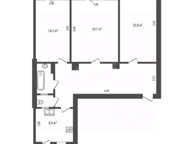 По документам 2-х комнатная, но по факту 3-х за счет перестройки большого коридора.