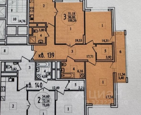 Количество окон позволяет сделать функциональную полноценную трехкомнатную квартиру с тремя спальнями, либо двухкомнатную квартиру с просторной кухней-гостиной. Отведено два места для сан.узла-3.36 кв.м. и 4.26 кв.м. Хороший вид из окна.