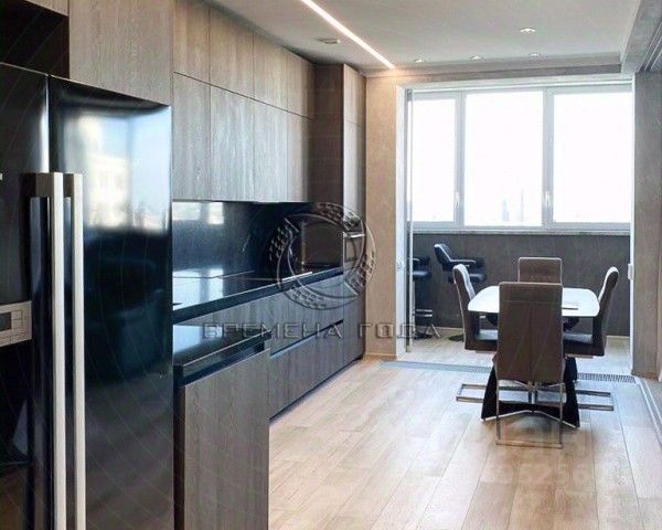 Гостиная с итальянской мебелью и возможностью использования в качестве третьей спальни. В кухне бытовая техника Neff и Liebherr, а кухонный фартук и столешница выполнены из натурального бразильского гранита.