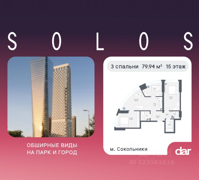Продаётся 3-комнатная квартира 98.97 м² в жилом комплексе SOLOS (бизнес-класс) рядом с парком Сокольники. Квартиру отличают панорамное остекление, потолки 3.2 м, улучшенная шумо и воздухоизоляция. Дом сдаётся в 4 квартале 2029 года, продажи проходят через эскроусчета. Подземный паркинг, коворкинг, закрытая благоустроенная территория с фонтаном и артобъектами. Гибкие условия покупки. Ключевые преимущества: — Расположение в одном из самых популярных районов старой Москвы, рядом с одним из крупнейших парков столицы — "Сокольники". — До парка 2 минуты пешком. — Удобный выезд на Третье транспортное кольцо. — Метро "Сокольники" в пешей доступности. Архитектура и проект: Solos — две башни бизнескласса, спроектированные архитектурным бюро Kleinewelt Architekten. Прозрачная, лаконичная архитектура с панорамным остеклением открывает виды на парк и центр города. Высота потолков — 3,2 метра, большие окна в пол. В квартирах предусмотрены инженерные решения для акустического комфорта и чистый воздух благодаря близости парка и современным системам вентиляции. Территория: Закрытый двор с благоустройством в созерцательном стиле: фонтан, артобъекты, зоны тихого отдыха, детские и спортивные площадки. Приватность и безопасность обеспечены современными системами доступа и видеонаблюдения. Инфраструктура: — Подземный паркинг; — Коворкинг для резидентов; — Рестораны и кофейни на первых этажах; — Зоны отдыха и озеленения. Гарантии и надёжность: Застройщик — молодая команда с опытом реализации проектов в сегменте бизнескласса. Все продажи ведутся через эскроусчета: ваши средства остаются на счетах в банке и не могут быть использованы до сдачи дома. Условия покупки: — Ипотека от ведущих банков (программы с господдержкой); — Возможна рассрочка на этапе строительства; — Инвестиционные пакеты для сдачи квартир в аренду. Запишитесь на консультацию и выберите свою квартиру уже сегодня. Мы поможем рассчитать ипотеку, подберём планировку и проведём виртуальный или живой тур по шоуруму. Здесь, среди деревьев и новой архитектуры, остаётся пространство для искренности, созидательности и чувствительности (sense-centric). 3-комнатная квартира на улице Сокольнический Вал в Москве.