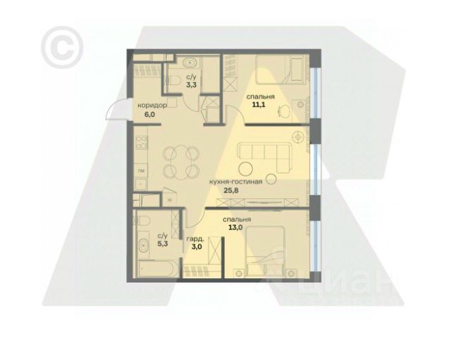 Двое взрослых собственников (общая совместная собственность), приобреталась у застройщика без использования материнского капитала, без обременений и перепланировок. Никто не прописан.