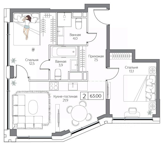 Рассрочка 0% с платежом от 250 000 ₽ в месяц. 3-комн. квартира в ЖК "ЭРА" на 2 этаже в 52 этажном здании Корпус 5. Общая площадь: 55.2 кв.м., жилая: 33.60 кв.м. Высота потолков 3.15 м. Современный премиум-квартал ЭРА на Дербеневской набережной, формирующий новый архитектурный облик Даниловского района Москвы. Жилой комплекс из шести высотных корпусов выполнен в актуальной интерпретации стиля ар-деко, где ритмичные линии фасадов, натуральный мрамор и изысканные орнаменты создают гармоничный и запоминающийся образ. ЭРА предлагает жителям единый просторный закрытый двор. Инфраструктура двора включает разнообразные детские игровые площадки, зоны для занятий спортом, а также места для спокойного отдыха — в всесезонном зеленом лабиринте или яблоневом саду. Для озеленения территории планируется высадка около 3000 деревьев и кустарников. Их сохранность обеспечат система автополива, а для комфорта в холодное время года малые архитектурные формы будут оборудованы подогревом. Вторая очередь комплекса включает три корпуса высотой от 37 до 52 этажей. Впечатляющие входные группы, разработанные бюро ХААСТ, встречают жителей потолками 8,8 метров. В лобби создана атмосфера уюта благодаря индивидуальной ароматизации и музыкальному сопровождению. Здесь же обустроена кофейная зона с профессиональной кофемашиной, а для дополнительного удобства установлен постамат. Высокий стандарт чистоты в любое время года обеспечивают роботы-уборщики, что подчеркивает технологичность комплекса ЭРА. Для комфортного подъезда такси перед каждым корпусом предусмотрены специальные зоны подачи машины и высадки пассажиров. Подземный паркинг на 285 мест. Ключевое преимущество — превосходная локация в развивающемся районе с готовой инфраструктурой. Всего в 5 минутах от Садового кольца, в шаговой доступности от Замоскворечья и набережной Москвы-реки, вы сможете наслаждаться динамикой городской жизни. При этом в самом комплексе на первых этажах будут работать кафе, магазины, салоны красоты и детские образовательные пространства. ЭРА — это гармоничный симбиоз статусного адреса, безупречного сервиса и приватности для жизни вашей мечты. 3-комнатная квартира в округе ЮАО в Москве.