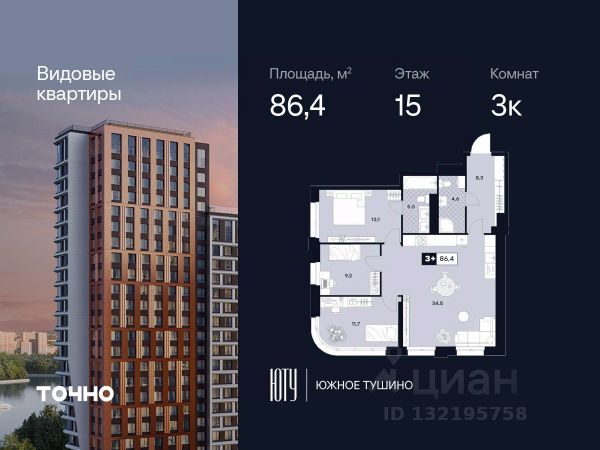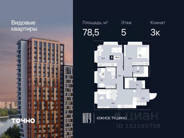 ЮТУ-камерные небоскребы бизнес-класса с исключительной архитектурой, видовыми квартирами и подходом к большой воде-благоустроенной набережной канала имени Москвы. Проект ЮТУ создает идеальный баланс жизни в городе. Это приватный оазис, где в любой момент можно сменить контекст и выбрать любой из тысячи маршрутов к активному отдыху и ярким впечатлениям. Локация премиум-класса • Первая линии в прибрежной части Химкинского водохранилища • Исключительно тихий и зелёный район Южное Тушино • За 2 минуты можно спуститься к воде, за 10 минут найти зеленые парки и готовую инфраструктуру, за 30 минут доехать до Кремля Концепция проекта • Две футуристичные башни, соединенные торговой галереей от бюро ATRIUM • 60 неповторяющихся планировок: квартиры с угловым "плавным" панорамным остеклением, мастер-спальнями и гостиными до 39м² и просто очень большие квартиры площадью до 128,6 м² • Беспрецедентная коллекция видов-в проекте 80 % видовых квартир Чувство эксклюзивности • Своя приватная жилая экосистема -только для резидентов домов • Лаунж-терраса на крыше • Пространство скрыто от посторонних глаз-с трех сторон его окружают строения проекта Прогрессивные технологии • 3-уровневая система безопасности (Face ID, BLE-метки, видеонаблюдение) • Умный паркинг с распознаванием номеров Проект федерального девелопера ТОЧНО-из ТОП-3 застройщиков России. Компания в проекте реализует ответственный подход к развитию пространств для благополучной жизни человека. И что в ЮТУ особенное воплощение приобретает концепция человекоцентричности, как заметная грань девелопмента ТОЧНО. 3-комнатная квартира в районе Южное Тушино в Москве.