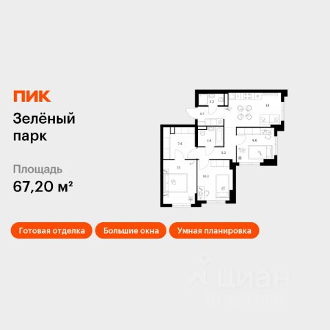 Продаётся 3-комн. квартира площадью 70,9 кв.м на 4 этаже 28 этажного дома (Корпус 5.4, Секция 5) проекта ПИК Зелёный парк. Светлый просторный подъезд на уровне земли, функциональная планировка, большие окна, c отделкой. Большой квартал с оригинальной архитектурой в обжитом районе Зеленограда. От него до станции МЦД-3 "Зеленоград-Крюково" — 20 минут пешком, до Кутузовского шоссе можно доехать на машине за 3 минуты, а до Пятницкого шоссе — за 5 минут. Характер "Зелёного парка" отражён в архитектуре. Квартал состоит из уютных разноэтажных блоков с оригинальными акцентами. Цветовая палитра проекта спокойная и сдержанная: оттенки белого и коричневого сочетаются с пастельным розовым и мятным. В проекте запланированы также два детских сада, две школы и паркинг. На первых этажах откроются магазины, кафе и другие сервисы — чтобы купить кофе и свежий хлеб к завтраку, можно будет просто спуститься на лифте. В уютных дворах-парках появятся места для отдыха, детские площадки, кофейни и зоны отдыха. Рядом — Зеленоградский лес, Парк Победы и Михайловский пруд, где можно гулять и заниматься спортом. У жителей "Зелёного парка" будет возможность получить московскую прописку. Для любителей спорта в 10 минутах пешком от квартала — велодром с BMX-трассой, физкультурно-оздоровительный комплекс Горизонт, а также лыжероллерная трасса длиной около 3 км. Артикул 1031275 (Застройщик АО "СПЕЦИАЛИЗИРОВАННЫЙ ЗАСТРОЙЩИК "ЗЕЛЕНОГРАДСКИЙ")