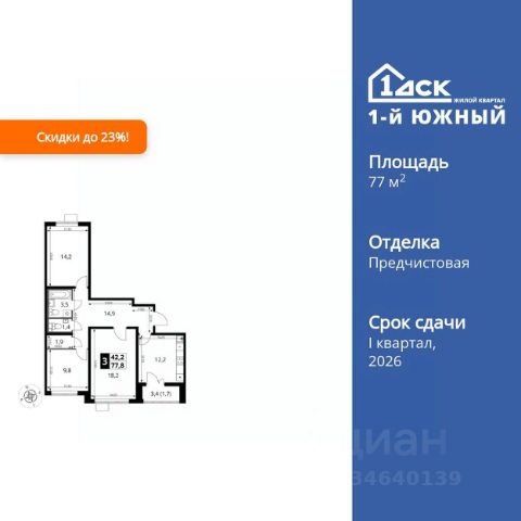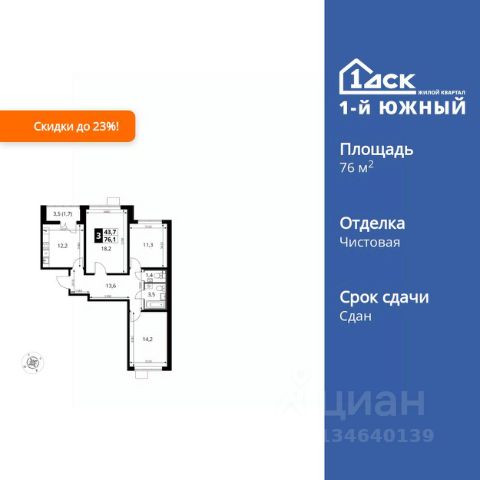 Продаётся 3-комн. квартира площадью 75,6 кв.м на 25 этаже 25 этажного дома (Корпус 55, Секция 1) проекта ПИК Восточное Бутово. Светлый просторный подъезд на уровне земли, функциональная планировка, большие окна, предчистовая отделка. Жилой квартал "Восточное Бутово" расположен в 5 км от МКАД по Симферопольскому шоссе, в Ленинском районе Московской области. Это экологически благоприятное место по соседству с Бутовским лесопарком. В 25 минутах на машине - станции метро и МЦД "Бутово". В "Восточном Бутово" уже открылись пять детских садов из десяти запланированных и одна школа из четырёх. Внутри квартала будет две поликлиники, одна из которых уже работает. В проекте два пешеходных бульвара - по одному из них уже можно гулять и кататься на велосипеде. В закрытых дворах-парках не будет автомобилей - мы построим многоуровневый паркинг, чтобы сделать район ещё более комфортным и безопасным для жителей. Артикул 1044346 (Застройщик ООО "Лотан")