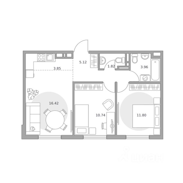 Продаётся 3-комнатная квартира 194, площадью 53,71 м², на 6 этаже в ЖК "Аникеевский" корпус 12/1. Стоимость — от 10406560 руб. Квартира без отделки, планировка односторонняя, окна во двор.