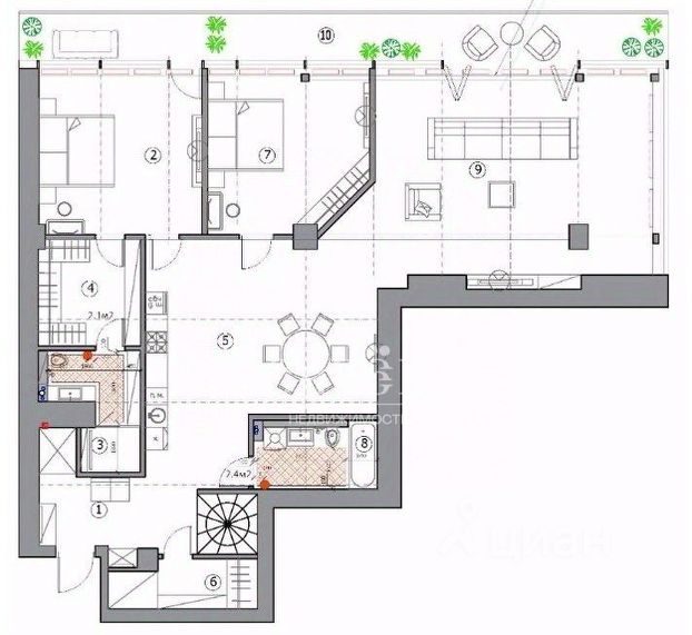* Балкон: 21,7 м².