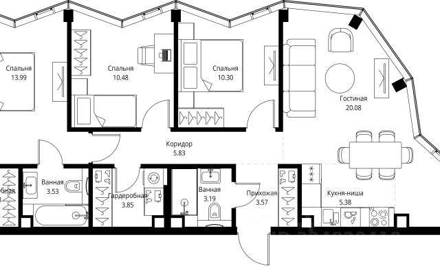 Прямая продажа от застройщика. Продаётся 3-комнатная квартира общей площадью 86.50 м² без отделки в доме премиум-класса МИRА на 17-м этаже 17 этажного дома. Квартира расположена в корпусе 1. Дом премиум-класса МИRA это: • Спокойный район с богатой историей и сложившейся инфраструктурой • Авторская архитектура на стыке классики и современности • Вход в парк прямо из жилого комплекса • Панорамные виды на Яузу, парки, ВДНХ и скульптуру "Рабочий и колхозница" • Удобные сервисы и безопасность для каждого резидента Расположение: Жилой квартал расположен в Алексеевском районе на северо-востоке Москвы, на второй линии домов, таким образом вы сможете дистанцироваться от шума и суеты проспекта Мира, но при этом будете жить недалеко от этой важной городской магистрали. Прямо у дома: • Парк Акведук • Река Яуза • Памятник "Рабочий и колхозница" Пешком: • 16 мин м. ВДНХ На автомобиле: • 12 мин ТТК • 15 мин Садовое кольцо • 12 мин Национальный парк "Лосиный остров" Благоустройство: Концепция благоустройства от бюро "ДРУЖБА" разработана в стиле "Лесная тропа". В уютном дворе расположились словно затерянные в лесу, площадки для отдыха. Они разделяются островками с травами, кустарниками, крупными камнями и деревьями, между которыми проходят узкие песчаные тропинки с деликатной подсветкой по вечерам. Центральной точкой притяжения для жителей станет главная площадь с фонтаном, которая открывается сразу из двух входных групп. Внутренний двор МИRA: • Детская площадка с зонами для игр малышей до трех лет и детей более старшего возраста • Спортивная площадка с профессиональным оборудованием для тренировок • Декоративные перголы • Воздушный арт-объект с подсветкой, похожий на облако • Чайный домик, где в отдельном отапливаемом павильоне можно в любое время года попить кофе с соседями или устроить камерное семейное чаепитие • Зоны для работы и отдыха с гамаком под навесом, скамейками и креслами Инфраструктура и окружение: В Алексеевском районе есть огромные благоустроенные парки, магазины, гимназии с высоким рейтингом и филиалы ВУЗов, частные и государственные детские сады, модные кофейни и фитнес-центры. В квартале МИRА предусмотрены: • 2 ресторана с видом на парк Акведук • 3 кафе • фитнес-студия • подземный паркинг на 330 машино-мест Компания MR предлагает своим клиентам специальные условия приобретения квартир в рамках программ ипотечного кредитования от банков-партнеров.