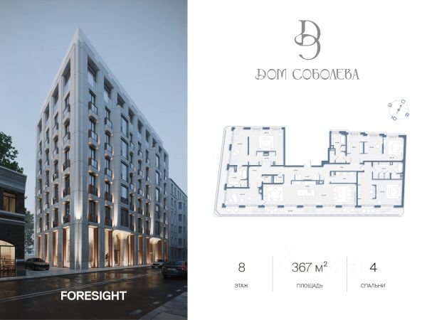 Продаётся 3-комнатная квартира в строящемся доме (Корпус 1), срок сдачи: II-кв. 2028, общей площадью 367.00 кв.м., на 8 этаже. "Дом Соболева" - это камерный жилой комплекс класса deluxe, расположенный на тихой и уютной улице Машкова в самом сердце Москвы. Проект создавался с особой тщательностью, чтобы предоставить своим жителям уникальное пространство для жизни, в котором сочетаются эстетика архитектурного наследия и современные стандарты комфорта. Разработанный архитектурным бюро NOWADAYS, Дом воплощает современное прочтение стиля модерн, изысканно вписанного в историческую ткань района. Пространство комплекса создано для тех, кто ценит приватность, высокое качество жизни и индивидуальность. Всего 33 резиденции и 2 пентхауса делают Дом Соболева по-настоящему уникальным и камерным проектом, в котором каждый житель чувствует себя частью закрытого сообщества. В интерьере и экстерьере использованы только натуральные премиальные материалы - от камня в отделке фасадов до коллекционного искусства в лобби. Столь продуманное внимание к деталям превращает каждый день в эстетическое переживание. Расположение между Бульварным и Садовым кольцом дарит проекту стратегическое преимущество - сочетание тишины переулков Покровки с шаговой доступностью к культурным, гастрономическим и деловым локациям центра столицы. Здесь ритм мегаполиса уступает место тишине, а каждый момент наполнен ощущением покоя и защищённости. Дом Соболева - это пространство, в котором городская энергия трансформируется в ощущение настоящего дома.