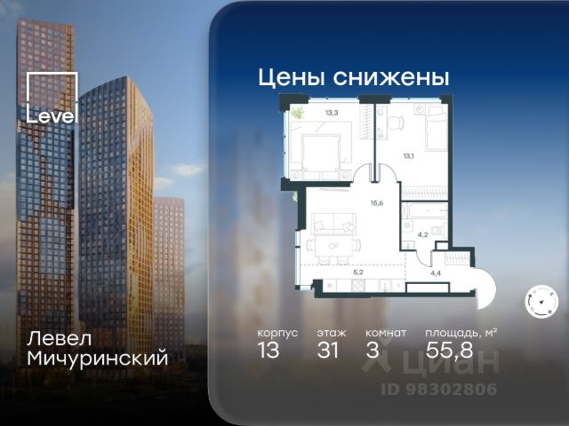 О квартире Продаётся трехкомнатная квартира общей площадью 83.10 кв. м. с отделкой на выбор: черновая, White Box. Квартира на 13 этаже корпуса 5.7 в жилом комплексе бизнес-класса "Среда на Лобачевского". До метро "Аминьевская" 7 минут пешком. Развитый район с удобным выездом "Среда на Лобачевского" строится рядом с Аминьевским и Очаковским шоссе, отсюда можно доехать до МКАД или Ленинского проспекта за 10 минут. В районе уже есть всё для жизни: рестораны, кофейни, торговые центры, поликлиники и спортивные комплексы, школы и сады, бульвары и парки. - 7 минут ходьбы до станции метро "Аминьевская". - 15 минут пешком до станции МЦД-4 "Очаково". - 8-15 минут на машине до Кутузовского проспекта и ТТК. - До 15 минут езды до заказников "Долина реки Сетунь" и "Воробьёвы горы". О жилом комплексе "Среда на Лобачевского" - новый квартал в парадном стиле старой Москвы. Благодаря разноэтажной застройке во дворе комплекса будет много света и воздуха, без ощущения замкнутого пространства. Во дворе лаунж-зоны для медитации и работы, площадки для игр и кинопоказов, а на первых этажах - кофейни и магазины. Особенности - Высота потолков до 3,24 метра. - Панорамное остекление в пол. - Квартиры с террасами, мастер-спальнями и сквозными планировками. - Дизайнерские гранд-лобби в каждом корпусе. - Ландшафтный парк с зонами отдыха у воды. - Коворкинг на свежем воздухе. - Локации для спорта, игр и приватного отдыха. - Соседский бульвар с площадкой для подростков. - Подземный паркинг с двумя въездами. - Система бесключевого доступа. - Стрит-ритейл на первых этажах.
