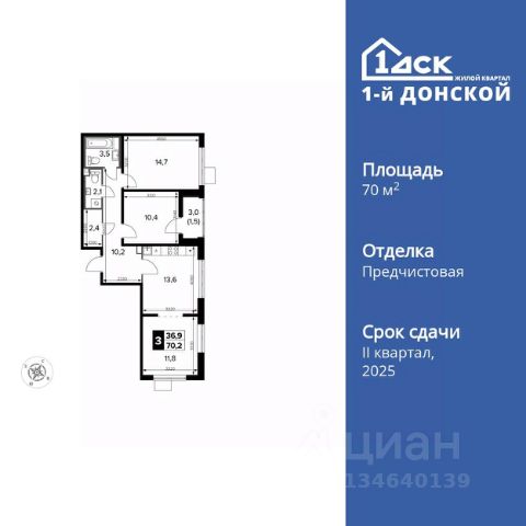комнаты: 20 кв.м совмещена с кухней 12,7 кв.м, 14,4 и 14,5 кв.м - изолированные, санузел раздельный, выход на лоджию из кухни, прихожая 13,4 кв.м.