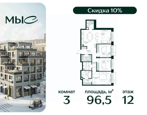 Прямая продажа от застройщика. Продаётся 3-комнатная квартира общей площадью 96.50 м² без отделки в премиальном жилом комплексе "МЫС" на 12-м этаже 12 этажного дома. Квартира расположена в корпусе "Волга". Проект МЫС — это, прежде всего, идеальное место для семей. В рамках проекта построят государственную школу, два детских сада и дворец спорта площадью 20 000 м2 с термальным комплексом, выплывным бассейном, фитнес-залом, теннисными, сквош и падел кортами и секциями для детей. На территории площадью, сравнимой с тремя парками Зарядье, появятся кафе и рестораны, пруд с набережной, спортивные и детские площадки, скейт-парк, лыжные и веломаршруты. Расположение: - 2 минуты до скоростной трассы М1 и Минского шоссе; - 10 минут до МКАД; - 15 минут до МЦД Лесной Городок - 20 минут до делового центра "Москва-Сити"; - 28 минут до аэропорта "Внуково". Благоустройство: - велосипедные и лыжные маршруты; - собственная набережная и парк; - лаунж-зоны в окружении природы; - беседки у очага; - дворец спорта площадью 20 000 м²; - термальный комплекс с тремя бассейнами; - 4 теннисных и падел-корта; - 6 сквош-кортов; - многофункциональный спортзал; - скейт-парк; - просторная площадь для прогулок с фонтаном; - детский клуб с творческими секциями; - гастро-доминанта; - кафе у пруда, рестораны, ритейл. Окружение - соседство с лесным фондом; - школа на 1250 мест и 2 детских сада на 350 и 255 мест; - Дубковский и Подушкинский леса, парк "Рассказовка", Мещерский парк. Действуют специальные условия при 100% оплате, подробности уточняйте у менеджера в офисе продаж.
