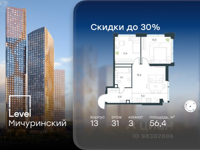 • ✓ В базе Циан 15 3-комнатных квартир на последнем этаже рядом с метро Мичуринский проспект (Калининско-Солнцевская)