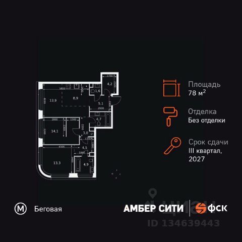 Прямая продажа от застройщика! Успейте забронировать квартиру до повышения стоимости! Жилой Комплекс премиум-класса. Продаётся 3-к квартира номер 1309 общей площадью 70.9 кв.м. на 54-м этаже 57 этажного здания. Без отделки. Цена с учётом скидки. Особенности квартиры: - Организуем показ в удобное для вас время! - Просторная спальня, в которой можно разместить большую кровать. - Угловая планировка - больше пространства для ваших идей. - Увеличенная ширина окна/окон - больше света и визуального простора. - Увеличенное количество окон - дополнительное освещение и свежий воздух. - Нестандартное окно - особенный акцент в вашем интерьере. - Увеличенная высота окна - больше воздуха и света. - Панорамное окно - создайте атмосферу открытости и простора. - Гостевой санузел - комфорт и удобство для ваших гостей. - Постирочная - организуйте пространство для стирки и сушки вещей. - Евроформат - просторное и удобное жилье с отличной планировкой. - Гибкая планировка - создайте пространство по своему вкусу. - Место для игры/занятия спортом - идеальное пространство для активных детей. - Можно оборудовать рабочее место - комфорт для работы и учёбы. - Просторная мягкая зона - комфорт и уют для отдыха всей семьи. - Линейная кухня - функциональность и практичность в одном решении. - Проходная кухня-гостиная - идеальное пространство для общения и готовки. - Ниша под шкаф - компактное и удобное место для вещей. Квартира без отделки. Чистый холст для воплощения интерьера вашей мечты. Информация о комплексе: ЖК "Амбер Сити" - вдохновляющий квартал у Москва-Сити с архитектурой мирового уровня. Здесь кипит жизнь 24/7: парки, инфраструктура и виды на центр без городской суеты. Самодостаточная среда для работы, творчества и семьи в духе лучших районов Нью-Йорка и Гонконга. Транспортная доступность: Квартал с исключительной транспортной доступностью: ключевые точки Москвы в 15-20 минутах. Полное погружение в деловую и культурную жизнь столицы с минимальными затратами времени на дорогу. Общественный транспорт: - Метро "Беговая" - 5 минут пешком - Остановка "2-й Хорошёвский проезд" - 3 минуты пешком - Метро "Звенигородская" (строящаяся) - 10 минут пешком На автомобиле: - Москва-Сити - 10 минут - Звенигородское шоссе - 3 минуты - ТТК - 5 минут - Серебряный бор - 8 минут - Садовое кольцо - 12 минут - Кремль - 20 минут - Шереметьево - 40 минут Внутренняя инфраструктура: ЖК "Амбер Сити": многоуровневый ландшафт на 6 гектарах с зелёным бульваром, объединяющим арт-объекты, водные зоны и архитектурные формы. В закрытых дворах на стилобате - детские площадки с сенсорными элементами, зоны отдыха с креслами и настилами для йоги. Навесы с подогревом и зарядками для зимнего сезона. Активности на любой вкус: настольный теннис, петанк, чтение в тишине на оборудованных скамейках. Продуманное пространство для ежедневного отдыха и игр детей и взрослых.