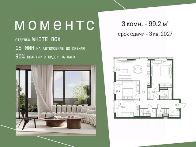 В продаже 3-комнатная квартира в готовом клубном доме бизнес-класса "Интонация". Квартира с высокими потолками с мастер-спальней, просторной кухней и постирочной. Возможна установка камина. Условия покупки: - семейная ипотека - рассрочка на 6 месяцев - Trade-in "Интонация" состоит из двух 21-этажных корпусов и приватной внутренней территории. На стилобате расположен ландшафтный сад с авторским благоустройством. В продаже финальный пул квартир бизнес-класса с мастер-спальнями, возможностью установки камина, окнами в ванных комнатах, увеличенной высотой потолков, а также просторными террасами и лоджиями. "Интонация" расположена в экологичном районе Щукино на северо-западе Москвы. Вокруг Щукинский лесопарк, Всехсвятская роща и парк "Покровское-Стрешнево". Одно из главных преимуществ дома - сочетание близости к природе и развитой инфраструктуры: - до метро "Щукинская" - 10 минут пешком - до центра - 10 минут на автомобиле Рядом детские сады и школы, включая знаменитую Курчатовскую. Недалеко расположены корпуса Финансового университета и других ведущих вузов. В пешей доступности - поликлиники, супермаркеты, фитнес-центры и спортивные секции. Собственная инфраструктура "Интонации" - ресторан итальянской кухни, студия фитнеса и пилатеса, супермаркеты, один из которых круглосуточный, салон красоты, барбершоп и химчистка. Приватная территория "Интонации" разделена на две тематические зоны: внутренний двор с детскими и спортивными площадками и ландшафтный сад на террасе. Главным акцентом стал парящий водоем с подвижной гладью. Двухуровневый паркинг рассчитан на 186 автомобилей и 27 гостевых мест. Есть возможность зарядки электромобилей, удобный подъезд для грузового транспорта, келлеры для хранения личных вещей и помещение для велосипедов.