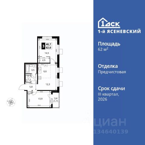 УСПЕЙ ПО СЕМЕЙНОЙ ИПОТЕКЕ БЕЗ НАЦЕНКИ! Квартиры в Москве от 45 000 рублей в месяц! Прямая продажа от застройщика! Жилой Комплекс класса Комфорт Плюс. Продаётся 3-к квартира номер 336 общей площадью 62 кв.м. на 18-м этаже 18 этажного здания. Отделка Whitebox. Цена с учётом скидки. Особенности квартиры: - Квартиры рядом с метро - м. Корниловская 9 мин пешком - 63 га лесопарка за окнами - Школа c it-кластером и бассейном. 2 детских сада - Мастер-зона с гардеробной. Просторное место для отдыха и удобного хранения вещей. - Просторная спальня, в которой можно разместить большую кровать. - Угловая планировка - больше пространства для ваших идей. - Увеличенное количество окон - дополнительное освещение и свежий воздух. - Раздельный санузел - больше удобства для всех членов семьи. - Евроформат - просторное и удобное жилье с отличной планировкой. - Увеличенная высота потолков - ощущение простора и легкости. - Возможность добавить спальное место - дополнительный комфорт для гостей. - Проходная кухня-гостиная - идеальное пространство для общения и готовки. - Гардеробная - удобство для хранения и организации вещей. - Ниша под шкаф - компактное и удобное место для вещей. - Лоджия - уютное место для отдыха и тишины. Квартира с предчистовой отделкой (White box). Вам не придется заниматься черновыми и трудоёмкими работы, а чистовую отделку и дизайн - сделайте на свой вкус. Информация о комплексе: В жилом комплексе комфорт-плюс класса "1-го Ясеневского" доступны преимущества двух стилей жизни. Ведь в пешей доступности метро, школа с 25-метровым бассейном и IT-кластером и при этом целых 63 га благоустроенного Троицкого лесопарка под окнами, где так приятно дышать свежим воздухом и слушать пение птиц. Собственная закрытая территория "1-го Ясеневского" представляет собой уютный оазис. Здесь и зеленый освещенный бульвар для прогулок, система велодорожек, маленькая городская площадь, кафе, пекарни и кофе поинты. А еще дворы без машин и многоэтажная парковка. Изюминка территории - фруктовые деревья во дворах и городские сады. "1-й Ясеневский" - всего в 1 км от МКАД, на территории новой Москвы. Жилой комплекс, где есть все необходимое для современного человека. Транспортная доступность: До метро "Корниловская" - 12 минут пешком До метро "Тютчевская" - 25 минут пешком До метро "Теплый стан" - 10 минут на транспорте До метро "Ольховая" - 30 минут на общественном транспорте Личный автотранспорт: Выезд на Калужское шоссе - 500 м МКАД - 1 км Внутренняя инфраструктура: ЖК "1-й Ясеневский" можно назвать идеальным местом для жизни семьи с детьми. Здесь буквально за домом находится Троицкий лесопарк - излюбленное место прогулок молодых родителей. А во внутренних дворах под детские площадки выделены специальные зоны. Они оборудованы всем, что нужно для счастливого детства: современными и максимально безопасными качелями, песочницами и лазалками. Оборудование и игровые сценарии на детских площадках спроектированы вместе с командой