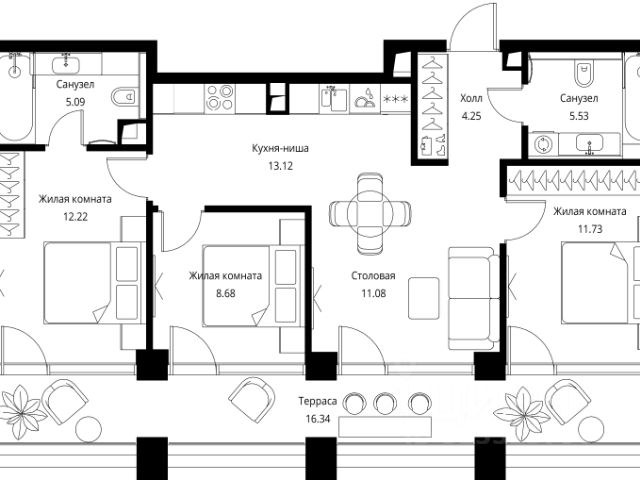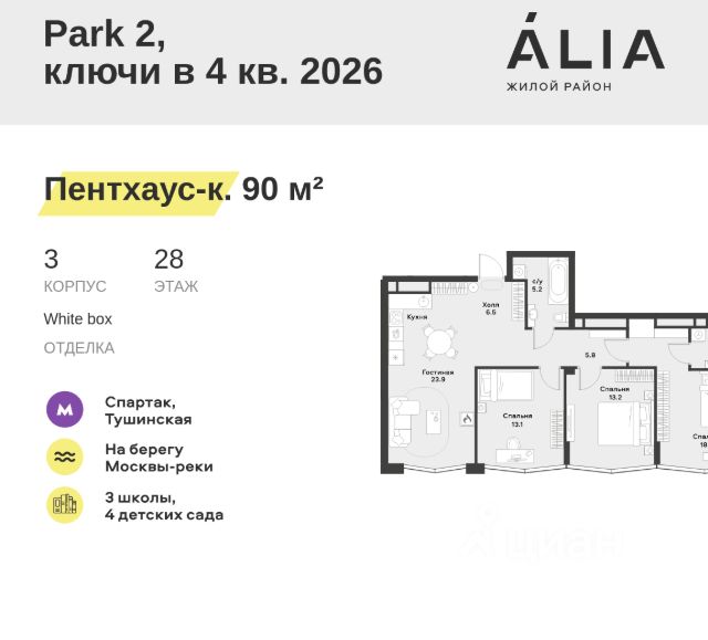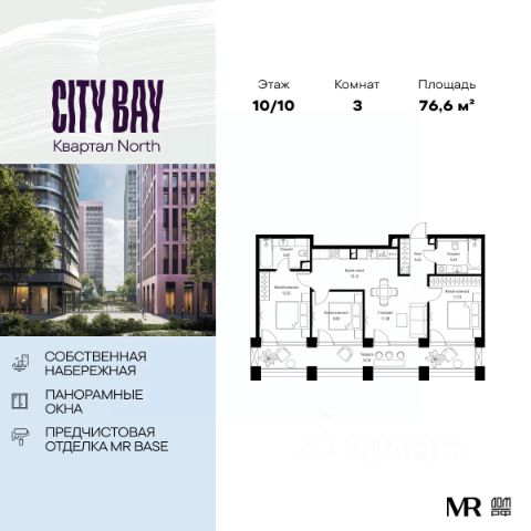 Прямая продажа от застройщика. Продаётся 3-комнатная квартира общей площадью 76.60 м² с предчистовой отделкой в ЖК City Вау, квартале North, на 10-м этаже 10 этажного дома. Концепция жилого комплекса City Вау - настоящий город в городе с отлично развитой инфраструктурой и собственной благоустроенной набережной. На территории жилого комплекса расположено пять кварталов - Atlantic, Pacific, Indian, North, Cliff. Жилой квартал City Вау отличается оригинальной концепцией и выделяется среди других проектов такими характеристиками как: - Архитектура, - Виды из окон, - Природное окружение, вызывая гордость у жителей и восхищение у прохожих. Вся жизнь района Покровское-Стрешнево строится вокруг водных объектов: - Пойма реки Сходни с уникальной экосистемой, - Речка Химка и Химкинское водохранилище, - Москва-река, - Канал имени Москвы. Кругом вода, и местные с удовольствием этим пользуются. А сразу за рекой - центр водного спорта в Строгино с вейк-парком и яхт-клубами. Помимо воды, здесь очень много зелени: - Рядом Сходненский ковш памятник природы, естественный амфитеатр глубиной 40 метров; - Парк при усадьбе Братцево с фруктовым садом; - Дубовая роща "Маяк", - Алешкинский лес; - Лесопарк Покровское-Стрешнево с пляжами и бобрами. Главные транспортные артерии района: - Волоколамское шоссе, - Таганско-Краснопресненская линия метро и МЦД-2. Всего за 20 минут можно добраться до центра на машине или метро, а МЦД связывает ЖК City Вау с северными, восточными и юго-восточными районами. Компания MR Group предлагает своим клиентам специальные условия приобретения квартир в рамках программ ипотечного кредитования от банков-партнеров.