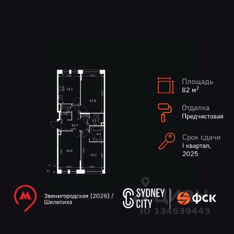 УСПЕЙ ПО СЕМЕЙНОЙ ИПОТЕКЕ! Скидки до 26%! Прямая продажа от застройщика! Жилой Комплекс премиум-класса. Продаётся 3-к квартира номер 88 общей площадью 82.9 кв.м. на 20-м этаже 20 этажного здания. Отделка Whitebox. Цена с учётом скидки. Особенности квартиры: - Распашная планировка - отличное сочетание удобства и свободы. - Увеличенная ширина окна/окон - больше света и визуального простора. - Увеличенное количество окон - дополнительное освещение и свежий воздух. - Гостевой санузел - комфорт и удобство для ваших гостей. - Душ помимо ванной - дополнительное удобство для вашей семьи. - Ниша под стиральную машину - удобство и экономия пространства. - Можно оборудовать рабочее место - комфорт для работы и учёбы. - Просторная кухня - место для семейных ужинов и кулинарных экспериментов. - Линейная кухня - функциональность и практичность в одном решении. - Гардеробная - удобство для хранения и организации вещей. Квартира с предчистовой отделкой (White box). Вам не придется заниматься черновыми и трудоёмкими работы, а чистовую отделку и дизайн - сделайте на свой вкус. Информация о комплексе: Премиум-класс прямо на берегу Москвы-реки, с прямым выходом на набережную и потрясающими панорамными видами! На Шелепихинской набережной, расположен причал для речных трамваев. Вам станет доступна единственная столичная транспортная артерия, на которой никогда нет пробок: 20 минут до Москва-Сити, да еще и с вдохновляющими видами по пути. Входные группы домов - это индивидуальные дизайн-проекты, посвященные трем главным местам в жизни Лермонтова: Тарханам, Петербургу и Кавказу, которые объединяют сочетание эстетики и комфорта. Бурная жизнь соседей больше не сможет нарушить ваш покой, а к вам никто не постучит, если вы захотите прибавить громкость в любимом музыкальном треке или Ваши дети захотят устроить ночную пробежку! Живите только по своим правилам. В каждой квартире подключен базовый пакет Умная квартира забудьте о беспокойстве о протечке; настройте свои сценарии управления техникой и электричеством; общайтесь с Умной квартирой голосом; Можете легко расширить базовый пакет и подключить дополнительные опции и устройства, чтобы из любой точки мира управляй работой бытовых приборов и систем, например: включайте разогрев ужина; регулируйте яркость яркость света; регулируйте громкость музыки; настраивайте работу теплых полов; Транспортная доступность: В 50 м до новой станции метро "Звенигородская". Вторая улица от ЦАО и соседство с Москва-Сити. Все виды общественного транспорта, в том числе речные трамвайчики, в пешей доступности Внутренняя инфраструктура: Основная артерия жизни квартала - центральный бульвар. Вы с радостью обнаружите, что путь до престижных школ и вузов, развлечений и магазинов сжался до нескольких минут езды на машине. К вашим услугам: