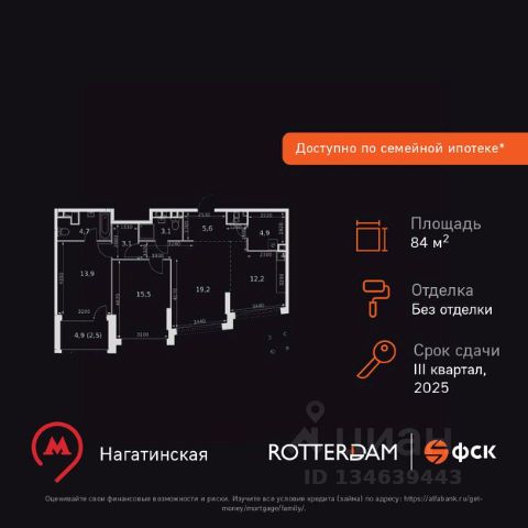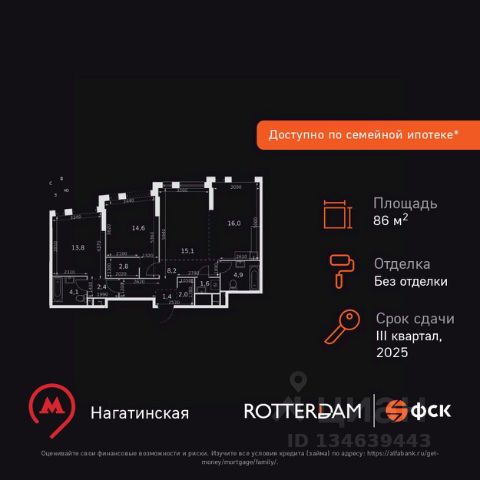 Продаётся 3-комн. квартира площадью 71,6 кв.м на 33 этаже 33 этажного дома (Корпус 6, Секция 2) проекта ПИК Второй Нагатинский. Светлый просторный подъезд на уровне земли, функциональная планировка, большие окна, c отделкой. Жилой квартал расположен в районе Нагатино-Садовники, в 20 минутах ходьбы от метро "Нагатинская" и в 18 минутах от "Коломенской". В проекте будет семнадцать домов высотой от 14 до 33 этажей, благоустроенная территория с дворами-парками, подземные паркинги, собственные детский сад и школа. Для тихого и активного отдыха появится MultiHub "Яблони" с красивым садом, большой детской игровой зоной и спортивным бульваром. Недалеко от "Второго Нагатинского" находятся парк имени Ю. М. Лужкова, музей-заповедник "Коломенское", Нагатинская набережная и спортивный комплекс "КАНТ", где зимой работают горнолыжные трассы, а летом — верёвочный парк. Артикул 819562 (Застройщик АО "Специализированный застройщик "АК 16")