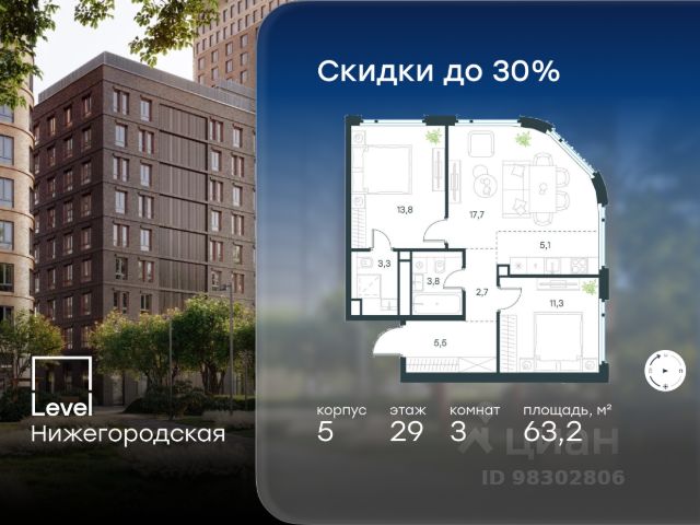 Квартира с кухней-гостиной и тремя спальнями в квартале "Издание". Особенности планировки: второй санузел, вид во двор, тёплая лоджия, предчистовая отделка. Квартиру можно купить онлайн. В квартире выполнена отделка "под чистовую". Установлены окна с двойным стеклопакетом, радиаторы с терморегуляторами. На полу цементно-песчаная стяжка. В квартиры заведены кабели для интернета и ТВ. Входная сейф-дверь не требует замены. Организован поквартирный учёт энергоресурсов (водоснабжение, отопление, электричество). Квартал "Издание" пронизан атмосферой локации, её энергетикой. Она воплощена в общей композиции, чистоте её форм, в графичных и динамичных силуэтных линиях. Дом на едином стилобате с корпусами от 15 до 43 этажеи поддерживают идею монументальности и одновременной лёгкости, но при этом у каждого из них сформировался свой характер. "Игра" с разными высотами, текстурой и формой фасадов позволила запустить в квартиры и дворы больше света, сделать пространства между домами проницаемыми и воздушными. Застройщик — компания Брусника. Инфраструктура квартала "Издание" включает соседский центр, детский центр творчества, магазины, предприятия услуг и офисные помещения. В шаговой доступности находятся: собственный парк размером 2,4 га, школы и детские сады, супермаркеты, фитнес-клубы, студии растяжки и йоги. Объявление от застройщика. Ипотека, материнский капитал. Обмен — один из способов покупки. Обмен подойдёт, если вы хотите быстро поменять старую квартиру на новую. Получить ипотеку или рассрочку, а также обменять квартиру можно онлайн. Запишитесь на онлайн-презентацию по телефону или на сайте. квартиры в нашей базе: ИЗД01-Ж2.15.2.