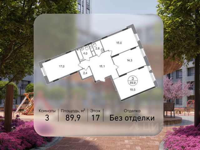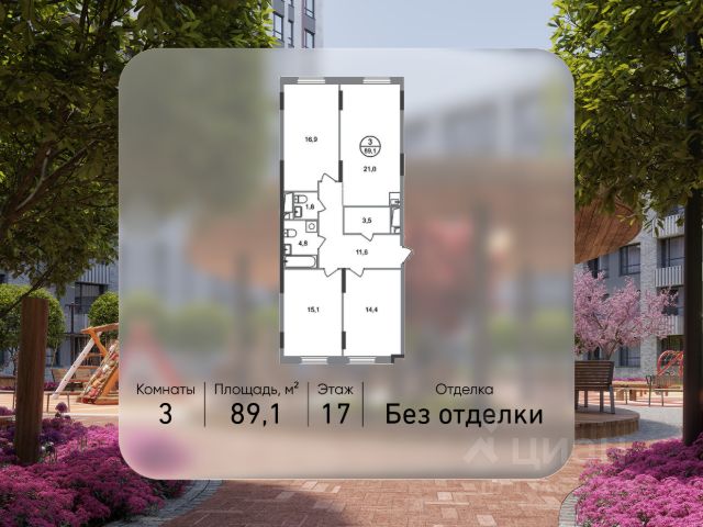 Продается трехкомнатная квартира в городе-парке "Переделкино Ближнее". Общая площадь квартиры - 89,1 кв. м, этаж 17 из 17. Срок сдачи - 3 квартал 2026 года. Тип дома - монолитный. ТОЛЬКО ДО 31 МАРТА выгодные условия на приобретение квартиры в ипотеку или рассрочку. Звоните - и мы подберем оптимальное предложение под ваш запрос! Город-парк "Переделкино Ближнее" расположен в 8 км от МКАД по Боровскому шоссе. ТРАНСПОРТНАЯ ДОСТУПНОСТЬ: - 10 минут пешком до МЦД-4 "Мичуринец" - 15 минут пешком до станции метро "Рассказовка" Солнцевской линии - 10 минут на машине до станции метро "Филатов Луг" Сокольнической линии - 30 минут до центра Москвы - Прямой выезд на дорогу Солнцево-Бутово-Варшавское шоссе, минуя жилую застройку всего ЖК БЛАГОУСТРОЙСТВО: 18 фаза строительства уникальна своим расположением - в шаговой доступности парк на Лукинской улицы, река Алёшинка. На территории 18 фазы строительства будут построены 2 монолитных жилых корпуса повышенного комфорта разной этажности 7, 17 этажей. А также многоуровневый паркинг на 300 м/мест. Вход в жилую часть корпусов каждой секции осуществляется с двух сторон - с наружного контура жилого дома и со стороны дворового пространства, предусмотрен безбарьерный доступ. ВНУТРЕННЯЯ ИНФРАСТРУКТУРА: В рамках данной фазы, для жителей предусмотрено создание пространства, свободного от машин - благоустроенные огороженные дворы с современными детскими и спортивными площадками, разделенными на зоны по возрастам. На территории проекта есть все необходимые объекты социальной и бытовой инфраструктуры: детские сады, школы, магазины, паркинги, аптеки, поликлиники, пожарная часть и др. АВТОРСКИЙ ДИЗАЙН: Современный монолитный дом переменной этажности 7 и 17 этажей. На фасаде предусмотрены корзины для установки кондиционеров. Входные группы домов выполнены по авторскому дизайну. Колясочные располагаются при входе, велопарковка на -1 этаже.