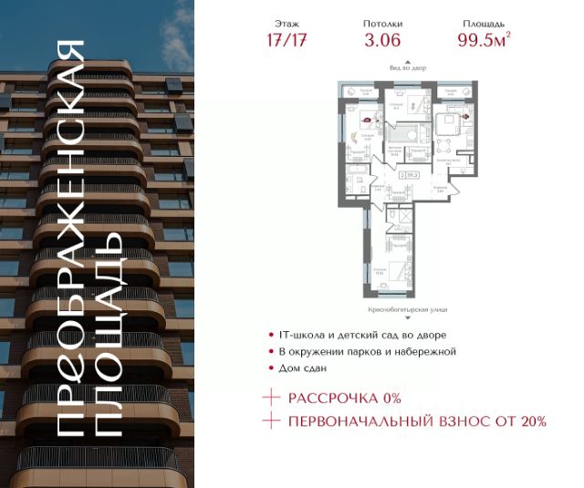 ARTEL два 12-этажных клубных дома по 82 квартиры в каждом. Квартира без отделки. Доступна опция дозаказа (2 варианта отделки на выбор). Особенности: Консьерж-сервис премиального уровня: ваших гостей встретят и проводят, помогут с бытовыми вопросами. Профессиональные службы клининга и охраны обеспечат полный порядок. На ухоженной, безопасной территории комплекса вы не увидите никого кроме соседей. Доступна опция валет-паркинга. Инфраструктура: 58 машиномест в подземном паркинге. Каждое — с зарядкой для электромобиля. Есть мотоместа. Предусмотрено хранение велосипедов и самокатов, колясочные и лапомойки. В приватном атриумном дворе сад с дорожками из натурального камня, воркаут-зона, места для отдыха и работы. Отдельная парковка для курьеров. Для курьеров будет отдельный вход, чтобы не пересекаться с остальными жильцами. Вокруг комплекса много зелени, низкая плотность и этажность окружающей застройки. Новых строек рядом не предвидится. В шаговой доступности: 10 детских садов и 8 школ, Преображенская набережная, кафе и рестораны, ТЦ, музеи, медицинская и спортивная инфраструктура. Сделка по договору долевого участия.