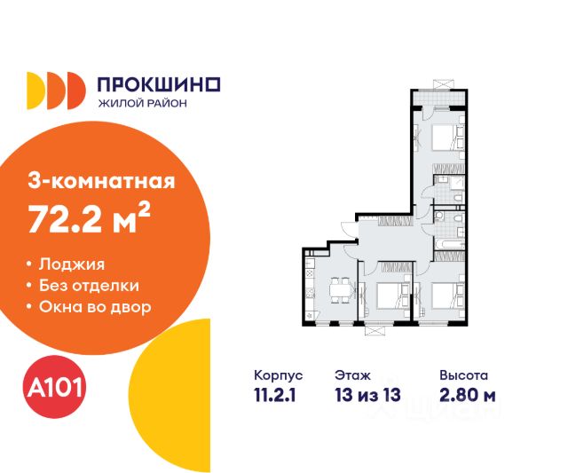 Продается трехкомнатная квартира 210 в новостройке Жилой квартал "Прокшино" по адресу Москва, ТиНАО, Новомосковский АО, Сосенское С/П, Москва, Новомосковский административный округ, район Коммунарка, жилой комплекс Прокшино, к11.2.1. Общая площадь квартиры - 60.70 кв. м., этаж 13 из 13, секция 3. Тип проекта, по которому построен дом - монолит, компания-застройщик - ООО "А101". Стоимость квартиры - 20297473 Р. ПРЕДЛОЖЕНИЯ ОТ ЗАСТРОЙЩИКА В ФЕВРАЛЕ 2026: Скидки до 10% на все квартиры. Только в офисах продаж до 28 февраля. Ипотека от 13,9 % для всех! На весь срок. "Семейная ипотека" вернулась. Ставка от 3,5 % на весь срок! Без удорожания! Выгодное ипотечное комбо: Ипотека от 2200 р./мес. и от 6 % после рождения ребёнка! Ипотека для всех "Держи пять!" - ставка 5 % на 2 года! *более подробную информацию по скидкам и акциям уточняйте в отделе продаж ЖК "Прокшино" строится на юго-западе Москвы всего в 500 м от одноимённой станции метро, что обеспечивает быстрый и удобный доступ в любую точку столицы. Вдоль живописного пруда почти на километр протянулась благоустроенная набережная. Монолитные дома комфорт- и бизнес-класса - узнаваемой выразительной архитектуры, с архитектурно-художественной подсветкой фасадов. Пешеходный мост через пруд - украшение района и главный путь от метро. На берегу обустроены зоны отдыха с качелями, деревянными настилами, шезлонгами и тренажёрами. Зелёные дворы свободны от машин. В районе реализуется проект благоустройства "Природа - в каждый двор!". Рядом с "Прокшино" появятся всесезонный горнолыжный курорт, аквапарк с дайвинг- и сёрфинг-центром. Развивается крупный бизнес-квартал. В пешей доступности от дома открываются детские сады, активно строится новое здание одной из лучших школ Москвы. Работают магазины, кафе, бытовые сервисы. Через район проходят веломаршруты и прогулочные дорожки. Преимущества "Прокшино": - 500 м до метро "Прокшино" - благоустройство "Природа - в каждый двор!" - набережная Хованского пруда - уникальная инфраструктура - "Школа Ямбурга" (топ-50 Москвы)