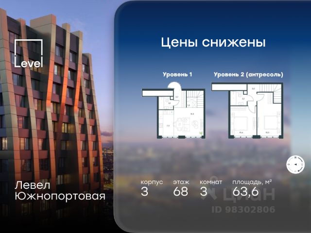 Цена указана с учётом скидки при 100%-й оплате, несубсидированной ипотеке, рассрочке (кроме программы "Рассрочка 0%"). В северной части района Печатники продается 3-комнатная квартира площадью 57.40 кв.м без отделки. Квартира расположена на 47 этаже 47-этажного корпуса 2 в жилом комплексе комфорт-класса Левел Южнопортовая (компания Level Group/Левел групп). Отличная транспортная доступность: - 10 мин. пешком до станции метро "Кожуховская"; - 20 мин. пешком до станции МЦК "Дубровка"; - 3 мин. на авто до ТТК; - 13 мин. на авто до Садового кольца; - 15 мин. на авто до Бульварного кольца. Продуманный архитектурный проект: - авторская архитектура от бюро СПИЧ; - уникальные виды на реку, парки и достопримечательности города; - высота потолков в квартирах до 6 м; - окна высотой до 1,87 м с высоким коэффициентом сопротивления теплоотдаче. Расположение: Жилой комплекс Левел Южнопортовая строится в северной части района Печатники - самой приближенной к центру. Здесь будет сформирован новый район "Южный порт", где построят крупный жилой и общественно-деловой центр, аналогичный Москва-Сити. В течение 10-12 лет в этом месте появятся не только жилые дома, но и развитая инфраструктура для жизни и работы. А еще совсем рядом находится набережная Москвы-реки, где планируется построить причалы для речных трамвайчиков и канатную дорогу. Уже сейчас вокруг жилого комплекса работают десятки магазинов и торговых центров, рядом расположено 6 парков, среди которых музей-заповедник "Коломенское". В 10 минутах пешком - 2 муниципальных и 2 частных детских сада, 7 общеобразовательных школ. Внутренняя инфраструктура: Для отдыха жителей в каждом корпусе предусмотрено лобби, оснащенное местами для отдыха, гостевыми санузлами и лапомойками, а в отдельных корпусах - камином. За счёт больших окон и высоких потолков пространства будут наполнены воздухом и светом. На первых этажах жилого комплекса откроются магазины, салоны красоты, фитнес-центр. Для детей строятся собственные детский сад и школа. Благоустройство: Внутренний двор комплекса разработан совместно с бюро GAFA. Основная идея - создать аналог Центрального парка в Нью-Йорке, гармонично сочетая высотные здания и большое изолированное парковое пространство. Вся площадь двора-парка будет огорожена и составит более 2 га, из которых 45% - озеленение. Одним из самых важных ландшафтных элементов здесь станет небольшая речка, наполняющаяся во время дождя. Вокруг неё появится сеть из островов, внутри которых расположатся тематические зоны спорта и отдыха. Технологии и инженерия: - автоматическая передача в управляющую компанию показаний квартирных счётчиков; - телефонная связь, телевидение и интернет на базе оптической мультисервисной сети; - гостевой вайфай в лобби и на территории двора; - единый ключ доступа для входа на территорию комплекса.