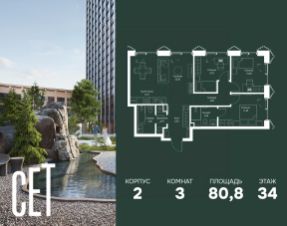 Прямая продажа от застройщика. В ЖК Сет продается 3-комнатная квартира площадью 75.18 м², расположенная в корпусе А, на 28 этаже 52 этажного дома. Сет имеет стратегически выгодное расположение в ЗАО, в районе с большой историей и блестящим будущим: между природной зоной долины реки Сетунь и Кутузовским проспектом. В рамках возведения первой очереди предусмотрено три корпуса высотой 18, 45 и 59 этажей. На верхних этажах спроектированы общедоступные смотровые площадки с панорамным обзором на центр столицы. Преимущества проекта: • Функциональные планировочные решения • Контроль проникновения через входную дверь • Система управления освещением и температурой в квартире • Система защиты от протечек с функцией перекрытия воды • Вход в подъезд по биометрическим считывателям Face ID • Скоростные лифты • Двухуровневый подземный охраняемый паркинг на 495 машино-мест Застройка Сет включает в себя не только жилые корпуса, но и инфраструктурные объекты. Все необходимое для повседневного комфорта будет расположено в шаговой доступности: • Фитнес-Клуб с бассейном • Ведущая городская школа, детский сад и школа искусств • Центр культуры и досуга • Медицинский центр • Кафе и рестораны Расположение комплекса: Пешком: • Метро "Давыдково" - 17 минут • Парк "Долина реки Сетунь" - 3 минуты • Открытие новых станций метро в шаговой доступности в будущем Инфраструктура: Разнообразить свой день резиденты Веер смогут также проводя больше времени на свежем воздухе. Двор разделен на 4 зоны разных эмоций и действий, которые пересечены и соединены веерными прогулочными маршрутами: • Спортивная площадка устроена в глубине "Кленовой рощи" • В "Чайном домике" будет создан навес с утеплением для отдыха в любую погоду • Площадки для детей воплотятся в "Волшебный лес" с цветами, зеркалами и световым дизайном • "Центральная площадь" устроена у водного оазиса живописного пруда. На машине: • "Москва-Сити" - 15 минут • Садовое кольцо - 20 минут • ТЦ "Океания" - 8 минут • ТЦ "Времена года" - 13 минут • Сколково - 12 минут • Гребной канал - 17 минут Компания MR предлагает своим клиентам специальные условия приобретения квартир в рамках программ ипотечного кредитования от банков-партнеров. Продам 3-комнатную квартиру в новостройке без отделки в Москве.