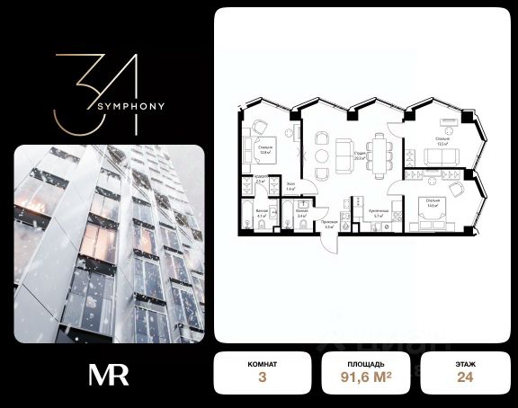 Дом сдан. Ключи в день покупки! В продаже 3-комнатная квартира площадью 85.60 м² с предчистовой отделкой на 10 этаже 43 этажного дома в корпусе Сильвер. ЖК Симфония 34 - концептуально новый жилой комплекс премиум-класса с подземной парковкой, состоит из четырех башен высотой 36 - 54 этажа. Квартиры сдаются с базовой (предчистовой) отделкой MR BASE или дизайнерской чистовой отделкой MR READY. Высота потолков 3 - 6 метров, окна высотой до 2,6 м. Более 100 кладовых в подземной части ЖК и более 500 на этажах. Безопасность - Система контроля входа на территорию комплекса, биометрия - Система автоматического водяного пожаротушения и противопожарного водопровода, система пожарной вентиляции - Доступ на парковку при помощи системы распознавания автомобильных номеров, карточка для контроля доступа резидентов - Система видеонаблюдения - Круглосуточная связь через приложение, телефон, голосовые сообщения с охраной, консьержем, call-центр. Расположение Пешком - 6 минут до метро "Дмитровская" - 15 минут до Тимирязевского парка На машине - 5 минут до Савеловского вокзала и Аэроэкспресса в Шереметьево - 10 минут до Москва-Сити и Садового кольца Благоустройство - 70% территории отведены под зеленые насаждения и ландшафтный дизайн - Приватный Японский сад - Детские площадки с зонированием по возрасту - Clubhouse для резидентов - Wellness & SPA - Зона для пикника, зона с гамаками - Центральное лобби, ресторан, коммерческие помещения - Дополнительный вход/выход на территорию комплекса Окружение - В 10 минутах от Symphony 34 находится дизайн-завод Flacon, где регулярно проходят культурно-образовательные и развлекательные мероприятия - Тимирязевский парк расположен в 850 м. Площадь парка 232 га - Рядом расположен парк "Дубки", площадью 16,5 га. - В 15 минутах расположен Хлебозавод 9. Здесь находятся шоурумы брендов, кафе разных кухонь мира, образовательные проекты и площадки для мероприятиКомпания MR предлагает своим клиентам специальные условия приобретения квартир в рамках программ ипотечного кредитования от банков-партнеров.