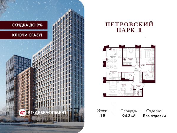 Дом сдан. Ключи в день покупки! В продаже 3-комнатная квартира площадью 86.20 м² с предчистовой отделкой на 11 этаже 43 этажного дома в корпусе Сильвер. ЖК Симфония 34 - концептуально новый жилой комплекс премиум-класса с подземной парковкой, состоит из четырех башен высотой 36 - 54 этажа. Квартиры сдаются с базовой (предчистовой) отделкой MR BASE или дизайнерской чистовой отделкой MR READY. Высота потолков 3 - 6 метров, окна высотой до 2,6 м. Более 100 кладовых в подземной части ЖК и более 500 на этажах. Безопасность - Система контроля входа на территорию комплекса, биометрия - Система автоматического водяного пожаротушения и противопожарного водопровода, система пожарной вентиляции - Доступ на парковку при помощи системы распознавания автомобильных номеров, карточка для контроля доступа резидентов - Система видеонаблюдения - Круглосуточная связь через приложение, телефон, голосовые сообщения с охраной, консьержем, call-центр. Расположение Пешком - 6 минут до метро "Дмитровская" - 15 минут до Тимирязевского парка На машине - 5 минут до Савеловского вокзала и Аэроэкспресса в Шереметьево - 10 минут до Москва-Сити и Садового кольца Благоустройство - 70% территории отведены под зеленые насаждения и ландшафтный дизайн - Приватный Японский сад - Детские площадки с зонированием по возрасту - Clubhouse для резидентов - Wellness & SPA - Зона для пикника, зона с гамаками - Центральное лобби, ресторан, коммерческие помещения - Дополнительный вход/выход на территорию комплекса Окружение - В 10 минутах от Симфония 34 находится дизайн-завод Flacon, где регулярно проходят культурно-образовательные и развлекательные мероприятия - Тимирязевский парк расположен в 850 м. Площадь парка 232 га - Рядом расположен парк "Дубки", площадью 16,5 га. - В 15 минутах расположен Хлебозавод 9. Здесь находятся шоурумы брендов, кафе разных кухонь мира, образовательные проекты и площадки для мероприятий Компания MR предлагает своим клиентам специальные условия приобретения квартир в рамках программ ипотечного кредитования от банков-партнеров.
