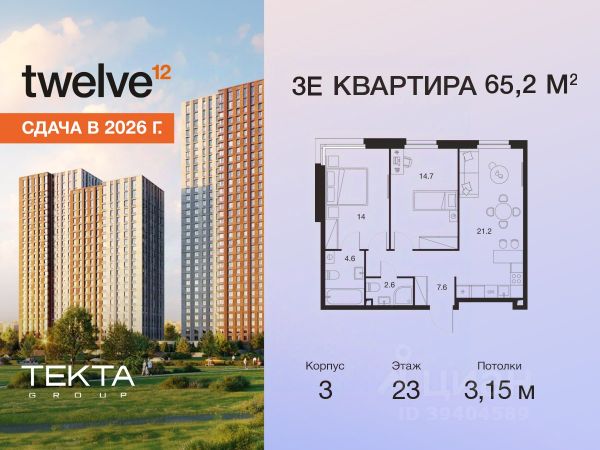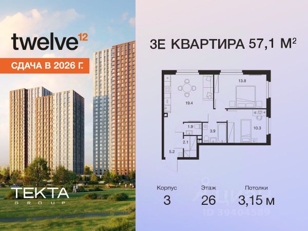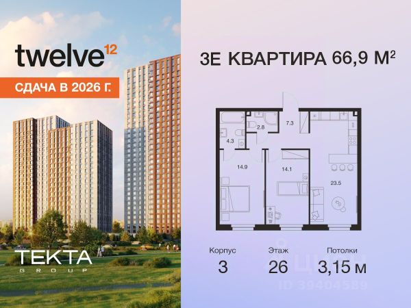 Рассрочка 0% с платежом от 120 000 ₽ в месяц. Сдача уже в 2026 году 3-комн. квартира в ЖК "Твелв" на 14 этаже в 34 этажном здании Корпус 1. Общая площадь: 55.1 кв.м., жилая: 36.20 кв.м. Высота потолков 3.00 м. ЖК Твелв от застройщика Текта Групп — это новый уровень жизни в районе Нагорный в 3-х минутах от станции метро. Проект представляет собой воплощение современной концепции комфортной жизни, где функциональность органично сочетается с эстетикой. Архитектура Твелв создает атмосферу, вдохновляющую на успех и располагающую к позитивным эмоциям. Дом, в котором каждый день будет наполнен уютом, а не рутинной работой и дорожными пробками. Твелв предлагает своим жильцам продуманные планировки, возможность объединения квартир, а также увидеть красоту города через угловое остекление увеличенных окон. Особое внимание уделено комфорту жителей: благоустроенная территория, зеленые насаждения, детские площадки, парковка. ЖК Твелв — это больше, чем просто жилье: это атмосфера умиротворенности, комфорта и гармонии.