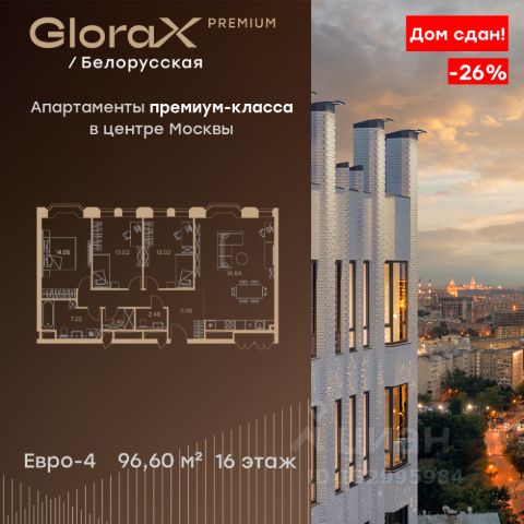 Продается 3-комн. апартамент на 8-м этаже в клубном доме премиум-класса GloraX Premium Белорусская. Общая площадь лота составляет 91,99 кв. м, из которых 47,03 кв. м отведено под жилую зону. Номер апартамента - 88. Цена лота указана с учетом НДС. Преимущества лота: панорамная кухня-гостиная; 2 эркерных окна; ниши под гардеробные в спальнях; 2 окна в спальнях; 2 санузла. GloraX Premium Белорусская это клубный дом премиум-класса в историческом и деловом центре Москвы. Проект расположен всего в 5 минутах от Тверской улицы и 15 минутах от Кремля и Манежной площади. GloraX Premium Белорусская воплощает в себе лучшие традиции современной архитектурной мысли: оригинальная геометрия фасадов из натурального камня, эффектное сочетание в отделке клинкерного и глазурованного немецкого кирпича, контрастные металлические акценты. В клубном доме представлено всего 183 лота площадью от 31 до 145 квадратных метров, начиная от эргономичных студий до просторных трехкомнатных апартаментов и пентхаусов. Реализована увлеченная площадь остекления, эркерные окна, просторные кухни-гостиные, мастер-спальни, гардеробные и кабинеты. 60% апартаментов имеют завораживающие панорамные виды на яркие доминанты города: Москва-Сити, Останкинскую башню, здание МГУ на Воробьёвых горах, Дом Правительства, высотку на Краснопресненской набережной. Апартаменты сдаются без отделки и с предчистовой отделкой White Box. Резидентам GloraX Premium Белорусская доступна вся насыщенная жизнь центра, премиальный сервис и клубная инфраструктура дома с собственным фитнес-залом, лаунж-зоной с камином и винным шкафом. Благоустройство и интерьеры от бюро AEDAS с приватными зонами и собственным водопадом. Это премиальный проект, где используются современные технические решения, призванные создавать максимальный комфорт и обеспечивать резидентам комплексную безопасность. Заказ и управление всеми сервисами осуществляется через удобное мобильное приложение с интуитивно понятным интерфейсом, либо через сотрудников управляющей компании, которые помогут по вопросам проживания круглосуточно. Системы "Умный дом" и Умная квартира" обеспечивают согласованную работу всех инженерных систем, а также управляют электричеством, климатом, освещением и бытовыми приборами.