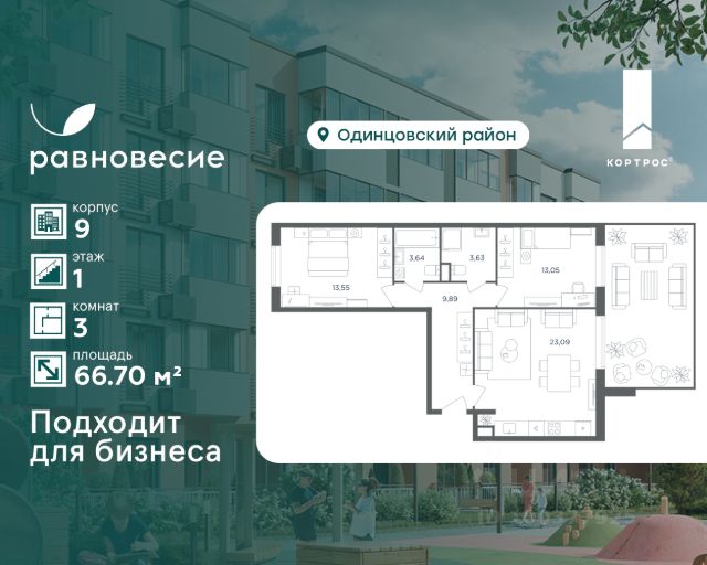 Указанная акционная стоимость доступна при 100% оплате или ипотеке без субсидирования. Цена действует до 19.01.2026 23:59:00. Стоимость без акции 17435232. Продаётся квартира с 3 комнатами общей площадью 63.80 кв. метров на 5 этаже жилого квартала комфорт-класса "Равновесие". На территории комплекса будет возведен детский сад на 360 мест, а на первых этажах жилых домов откроются кафе, магазины и все необходимое для удобства жителей. Локация "Равновесия" выделяется среди других пригородных ЖК разнообразием быстрых маршрутов до Москвы. Для автомобилистов преимуществом станут удобные выезды на Можайское шоссе, Рублёво-Успенское шоссе, Минское шоссе с платной трассой и другие. Также в пешей доступности находятся две ж/д станции — "Жаворонки" и "Здравница". Дорога на электропоезде до делового центра "Москва-Сити" составит всего 35 минут. Особенности ЖК: - Малоэтажная застройка: 4-6 этажей; - Благоустроенный пешеходный бульвар; - Пространства для отдыха и спорта; - Квартиры с террасами на последних этажах; - Квартиры с отдельным входом на первых этажах; - Внутренняя территория квартала свободна от машин; - Безбарьерная среда; - Помещения для хранения детских колясок и спортивного инвентаря.