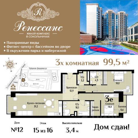 • ✓ В базе Циан 41 3-комнатных квартир в готовой новостройке рядом с метро Сокольники (Сокольническая)