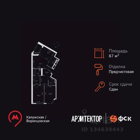 Прямая продажа от застройщика! Жилой Комплекс премиум-класса. Продаётся 3-к квартира номер 225 общей площадью 87.6 кв.м. на 3-м этаже 46 этажного здания. Предчистовая отделка. Цена с учётом скидки. Особенности квартиры: 50% лотов - Планировка повышенной комфортности - Живите в квартире сейчас, платите потом - Лидер продаж - Двухуровневый двор без машин - Успей купить до повышения - Скоро ключи! 50% лотов - Идеальная планировка - Живите в квартире сейчас, платите потом - Лидер продаж - Двухуровневый двор без машин - Успей купить до отмены скидок - Скоро ключи! - Мастер-зона с санузлом. Уют и комфорт в одном пространстве. - Распашная планировка - отличное сочетание удобства и свободы. - Увеличенная ширина окна/окон - больше света и визуального простора. - Угловое остекление - свет и воздушность в каждой комнате. - Гостевой санузел - комфорт и удобство для ваших гостей. - Душ помимо ванной - дополнительное удобство для вашей семьи. - Евроформат - просторное и удобное жилье с отличной планировкой. - Место для игры/занятия спортом - идеальное пространство для активных детей. - Можно оборудовать 2 или более рабочих места - пространство для нескольких человек. - Просторная мягкая зона - комфорт и уют для отдыха всей семьи. - Линейная кухня - функциональность и практичность в одном решении. - Возможность добавить спальное место - дополнительный комфорт для гостей. - Просторная гардеробная - место для вашего личного пространства. - Ниша под шкаф - компактное и удобное место для вещей. - Лоджия - уютное место для отдыха и тишины. Квартира с предчистовой отделкой (White box). Вам не придется заниматься черновыми и трудоёмкими работы, а чистовую отделку и дизайн - сделайте на свой вкус. Информация о комплексе: Ощущение уютного дома должно начинаться с подъезда. Мы постарались предусмотреть все нюансы, чтобы наши лифты отвечали самым строгим современным требованиям. Вы всегда сможете увидеть, кто звонит в домофон. В каждой квартире подключен базовый пакет Умная квартира забудьте о беспокойстве о протечке; настройте свои сценарии управления техникой и электричеством; общайтесь сУмной квартирой голосом; Можете легко расширить базовый пакет и подключить дополнительные опции и устройства, чтобы из любой точки мира управляй работой бытовых приборов и систем. Наличие кладовых позволит вам поддерживать идеальный порядок и уют в вашей квартире! Под башнями расположился трехуровневый паркинг на 670 машино-мест с прямым доступом из квартир любого подъезда. По периметру паркинга предусмотрена гостевая парковка на 30 мест. Транспортная доступность: До метро "Калужская" - 12 минут пешком, 14 минут (7 км) до ТТК, 9 минут (6 км) до МКАД, 18 минут (11 км) до Садового кольца. В шаговой доступности до Воронцовского парка Внутренняя инфраструктура: В ЖК продуманная, богатая инфраструктура из трех зон. В основной входной группе сконцентрированы все блага современного мегаполиса: супермаркет, ресторан, фитнес-клуб, аптеки, сало