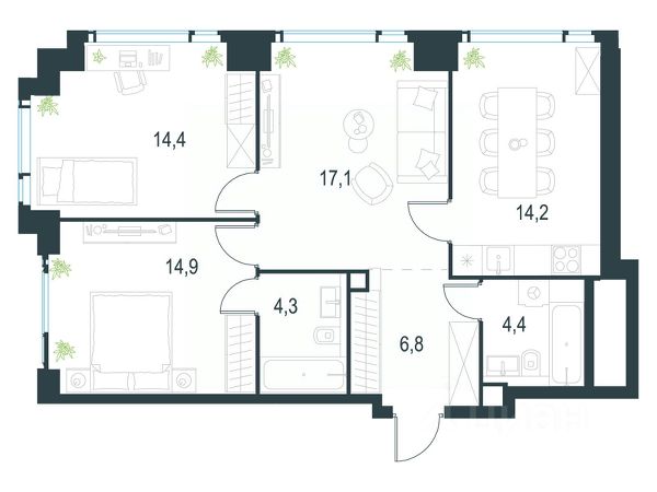 Этаж: 15, комнатность: 3 Площадь: 72 кв.м. Продаются апартаменты в многофункциональном комплексе бизнес-класса West Tower в ЗАО. 3 - комнатные апартаменты в West Tower это идеальные апартаменты для индивидуальности. Простор открытой планировки, в сочетании с инфраструктурой комплекса и отличной экологией вокруг дают отличную основу для покорения вершин. Здесь только самое необходимое. Эти апартаменты больше других подобных подходят для зонирования. Можно легко отделить хоум офис от кухни, а пространство для приема гостей от зоны отдыха. West Tower — апартаменты с премиальным сервисом на Аминьевском шоссе. Развитая инфраструктура и хорошая транспортная доступность. Рядом три станции метро: Аминьевская, Давыдково и Мичуринский проспект. У подножия коплекса находится Природный заказника Долина реки Сетунь, который дополнен собственным парком на крыше. Архитектура Строгий, харизматичный стиль проекта West Tower отражает в себе концепцию рационального проектирования и прагматичного подхода. Здесь все продумано до мельчайших деталей. Инфраструктура в доме Торговая галерея Kvartal West расположилась на первых этажах комплекса. Более 150 бутиков, кафе и рестораны, игровые центры, кинотеатр Синема Стар и премиальный фитнес-клуб World Class с бассейном. Комфорт и безопасность Премиальный консьерж-сервис 24/7, круглосуточная охрана, видеонаблюдение, система СКУД, закрытый охраняемый паркинг и эксклюзивное мобильное приложение для решения бытовых вопросов резидентов.